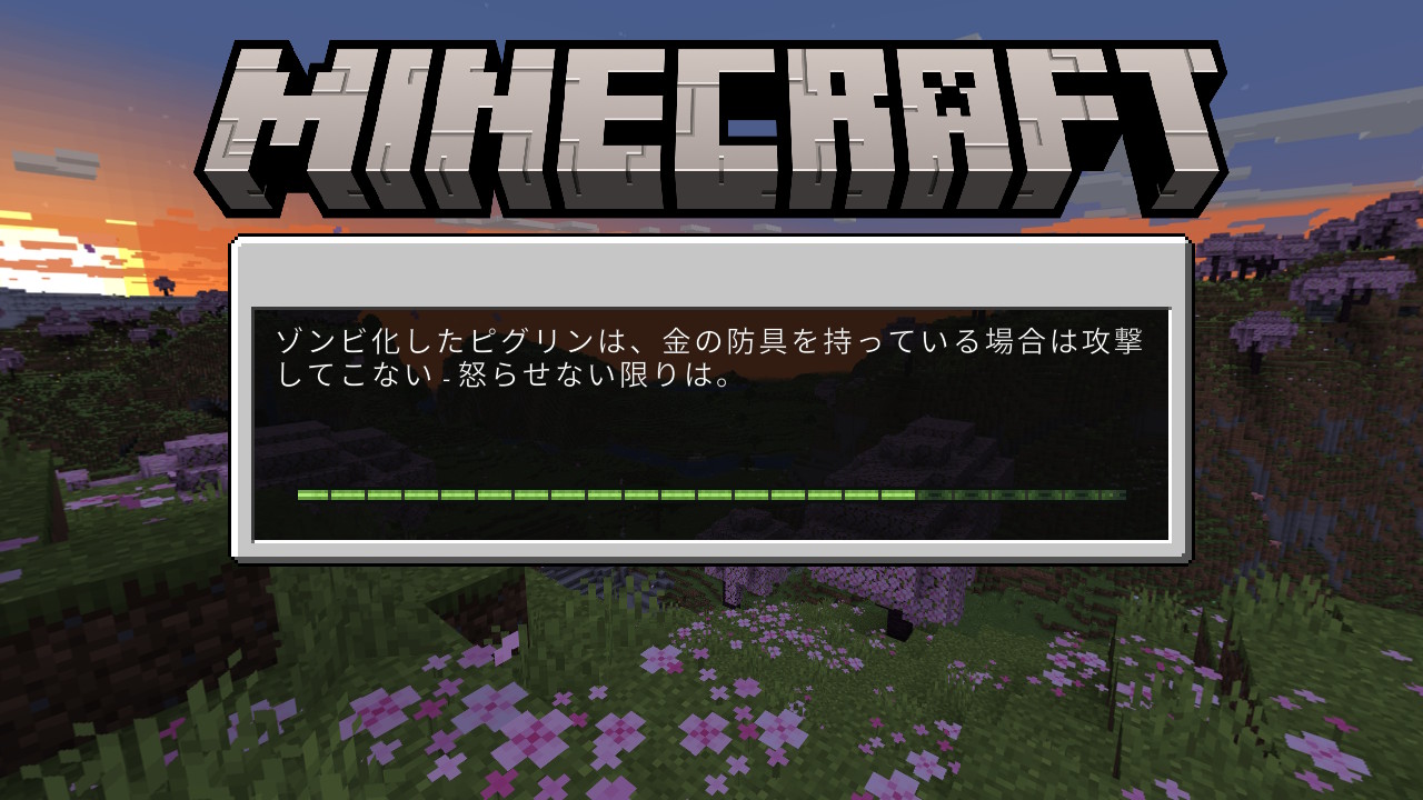 ゾンビ化したピグリンは、金の防具を持っている場合は攻撃してこない - 怒らせない限りは。 | ピグリンは、金の防具を着ていれば敵対しない - 攻撃したり宝物を盗まなければ。 | The explanation is incorrect |