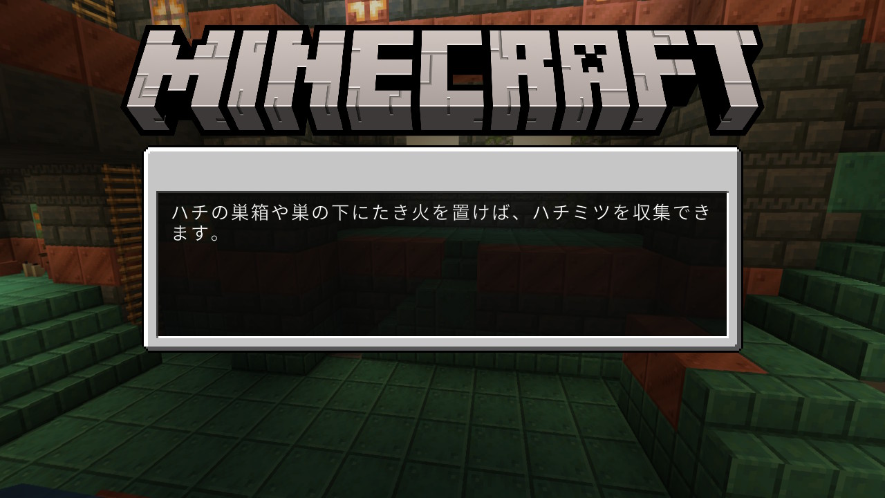 ハチの巣箱や巣の下にたき火を置けば、ハチミツを収集できます。 | ハチの巣や養蜂箱の下に焚き火を置けば、ハチミツやハニカムを安全に回収できます。 | A little hard to read |