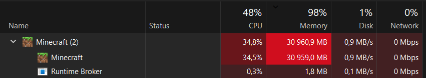 When in the game the RAM usage keeps growing even while in the main menu. When joining a world it becomes unplayable since all my computer's resources are being used up.