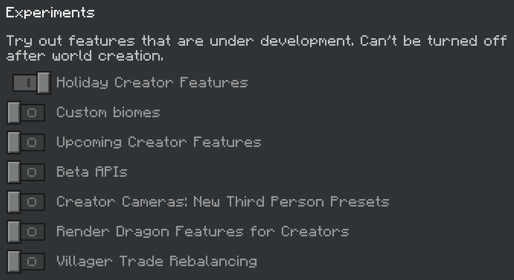 The player can still earn achievements after enabling experiments using the new world-edit screen (like the Holiday Creator Features)