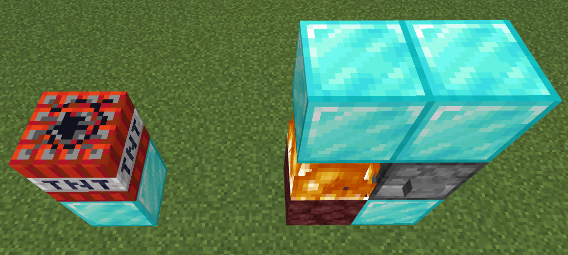 Build this setup exactly as shown. Make sure the dispenser output faces the TNT/TNT minecart.