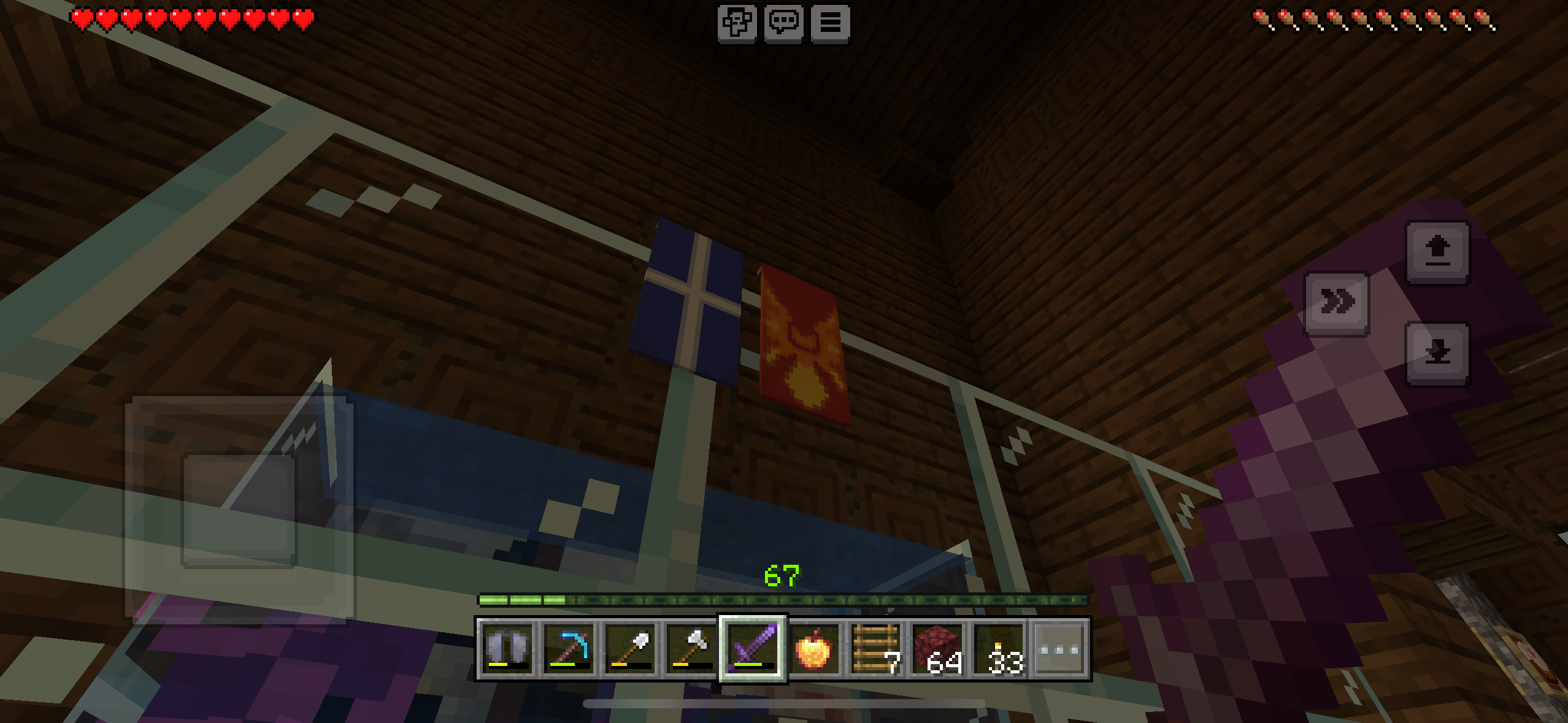 The banners from behind the glass blocks seem to glitch in front.