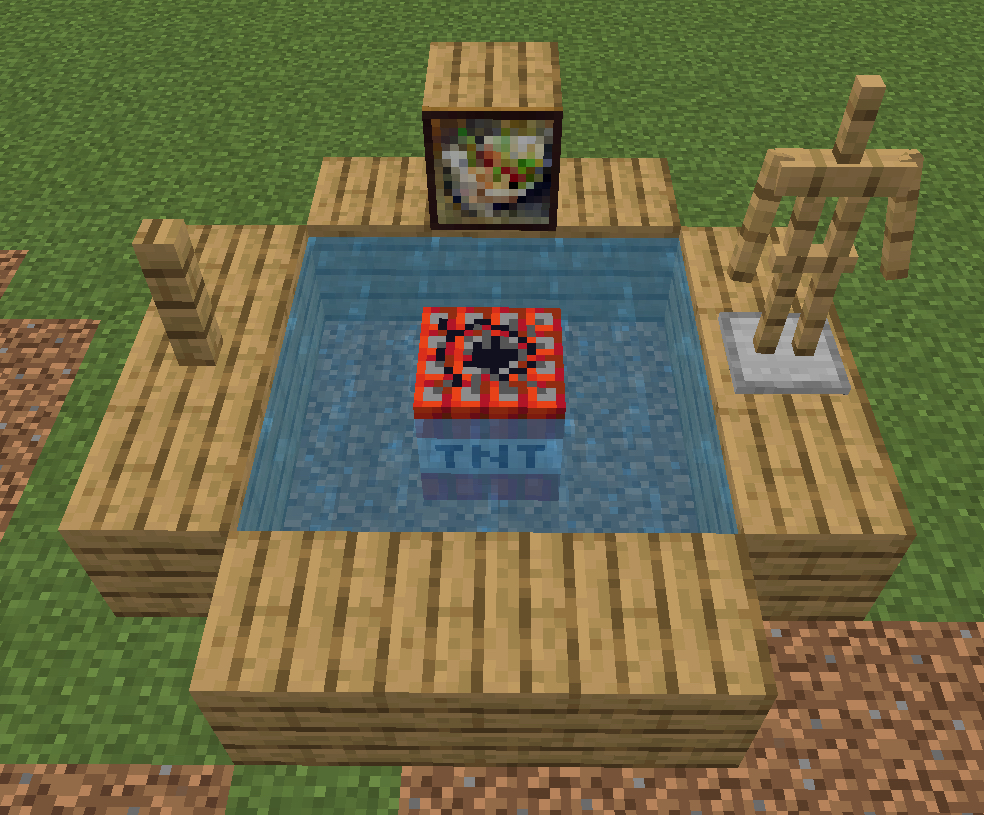 The TNT submerged in water will destroy paintings, armor stands and leash knots.