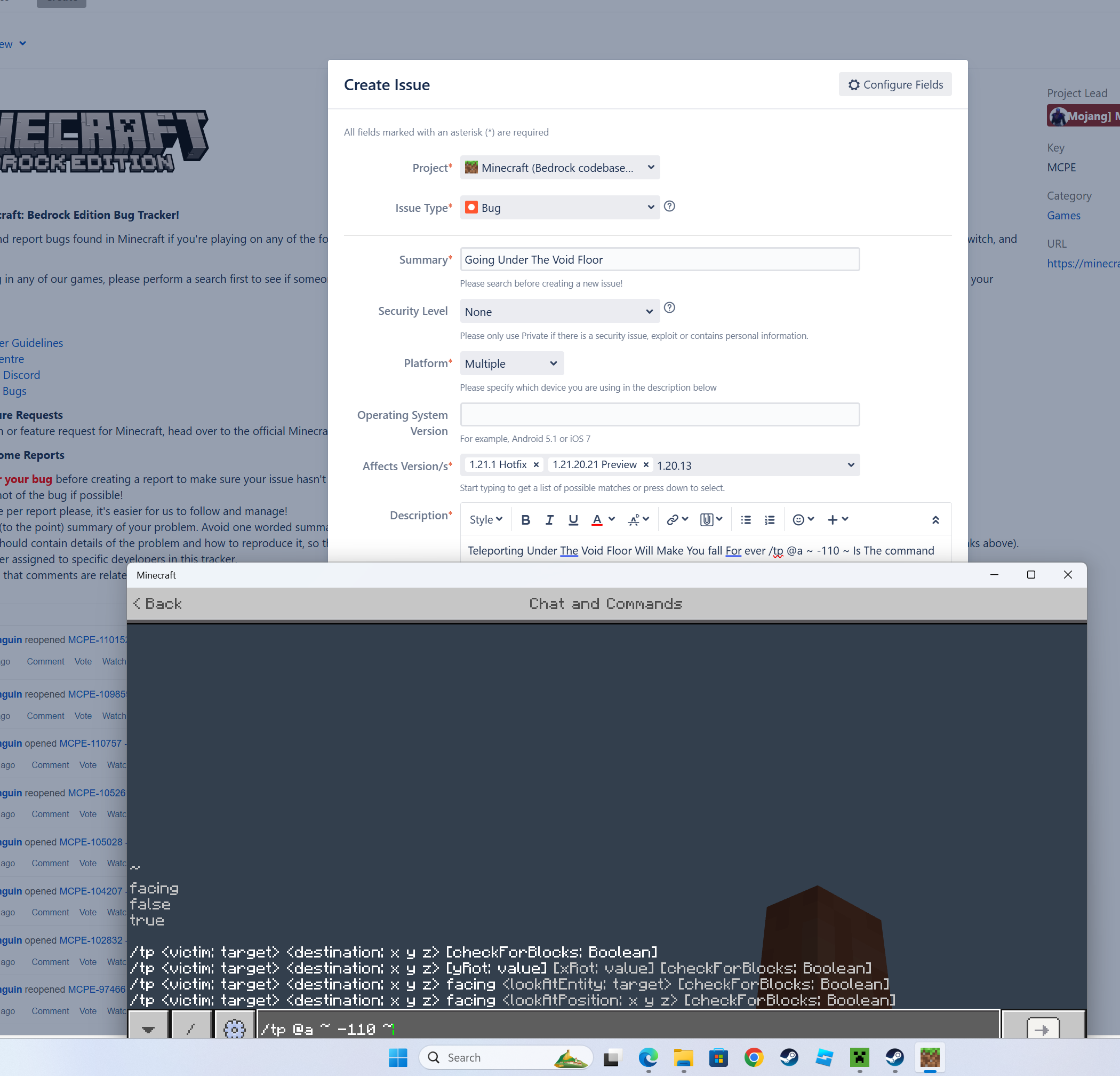 📓 Bug Tracker Guidelines – 💬 Community Support – 📧 Mojang Support (Technical Issues) – 📧 Microsoft Support (Account Issues)