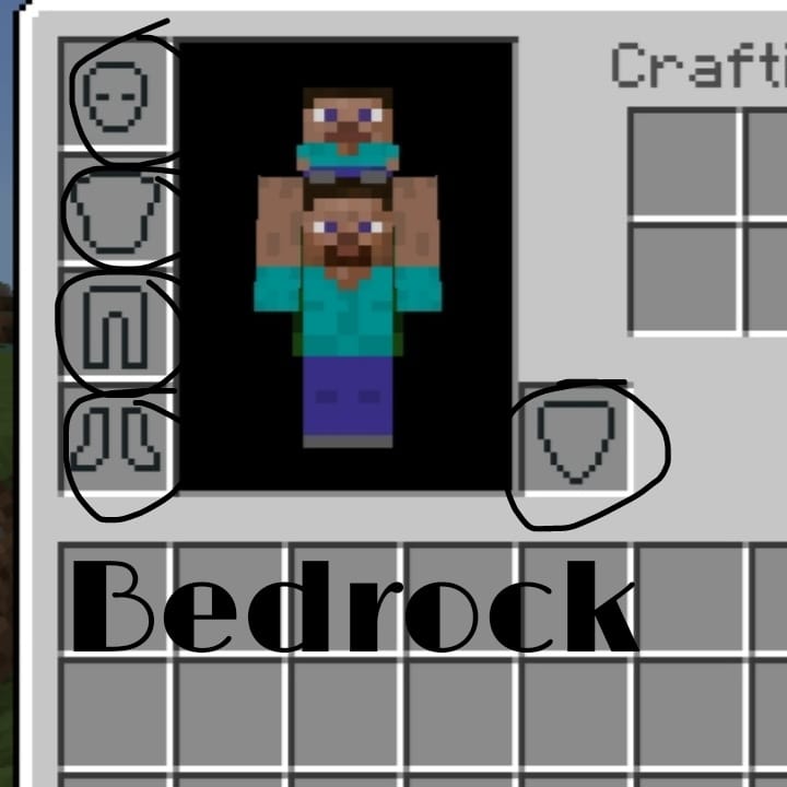 The armor icons have a darker colour on bedrock edition than Java, and bedrock edition uses the old shield icon, while java has a newer icon for the shield.