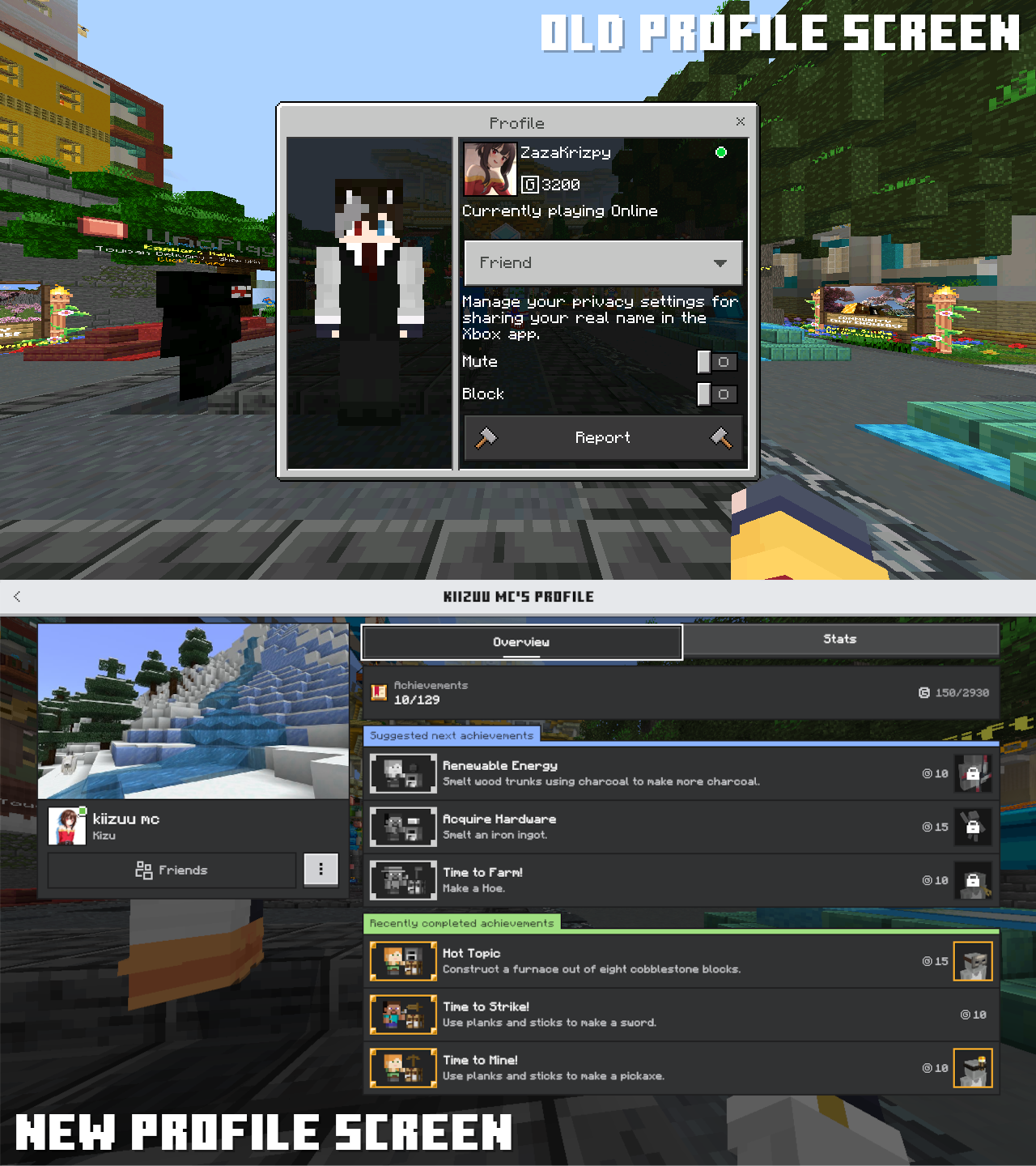 what do you mean? you don't see the new profile screen when you click on players in a world or server?
