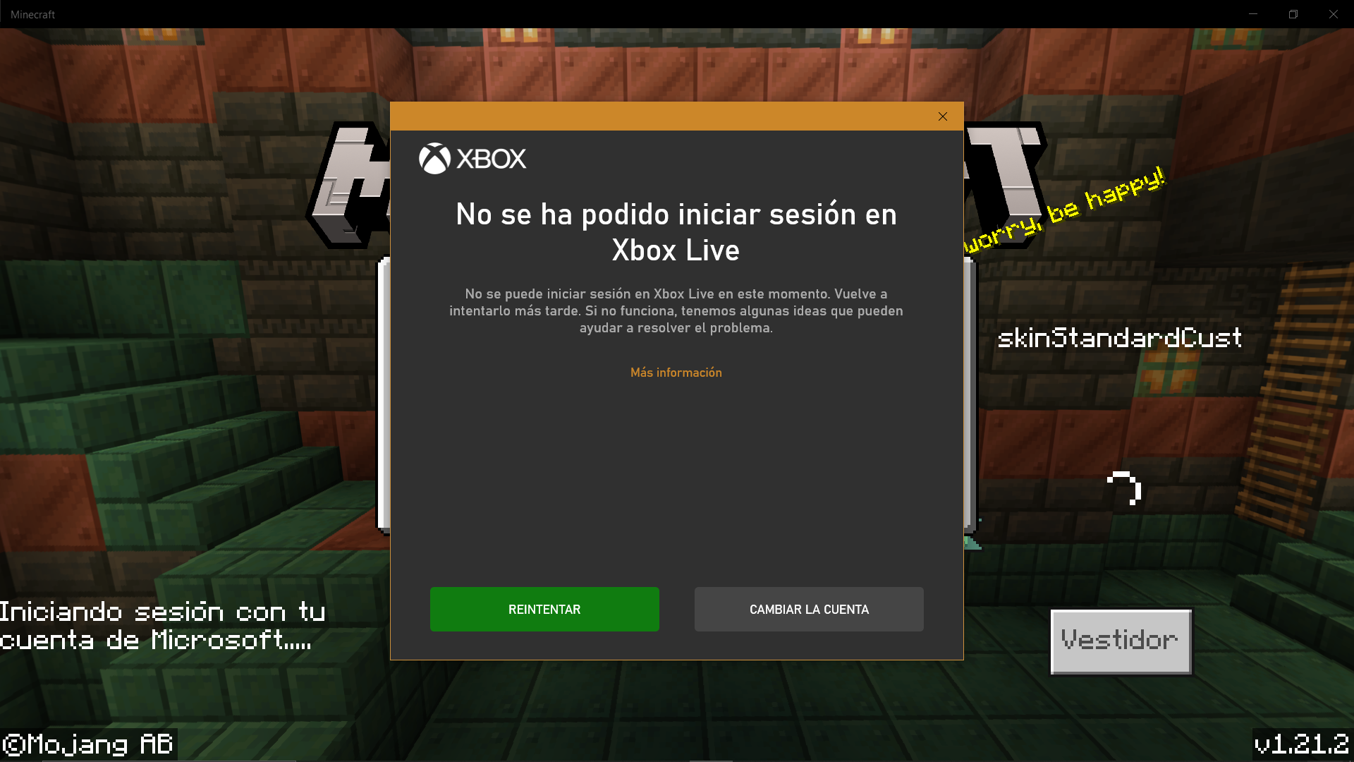 When I go to log in to the Microsoft account I get a window saying that it was not possible to log in to XBOX LIVE along with the options to retry and change account (I have tried both options.