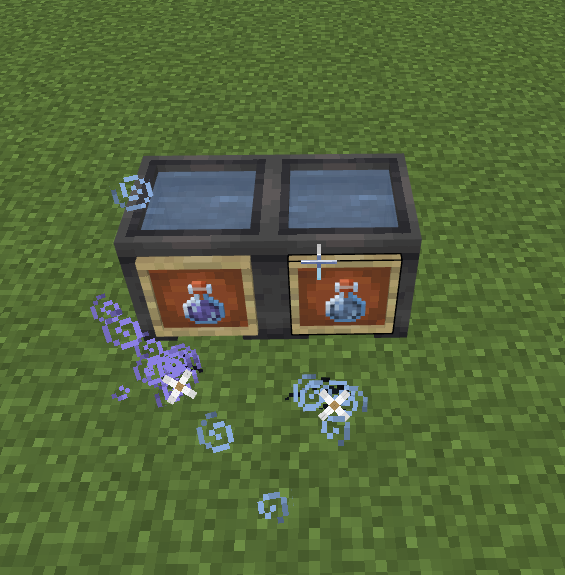 (The photo has each potion in the cauldron, plus arrows of the respective effects for particle comparison. You can see that the particle from the Turtle Master cauldron is the same as the ones from the Slowness arrow)