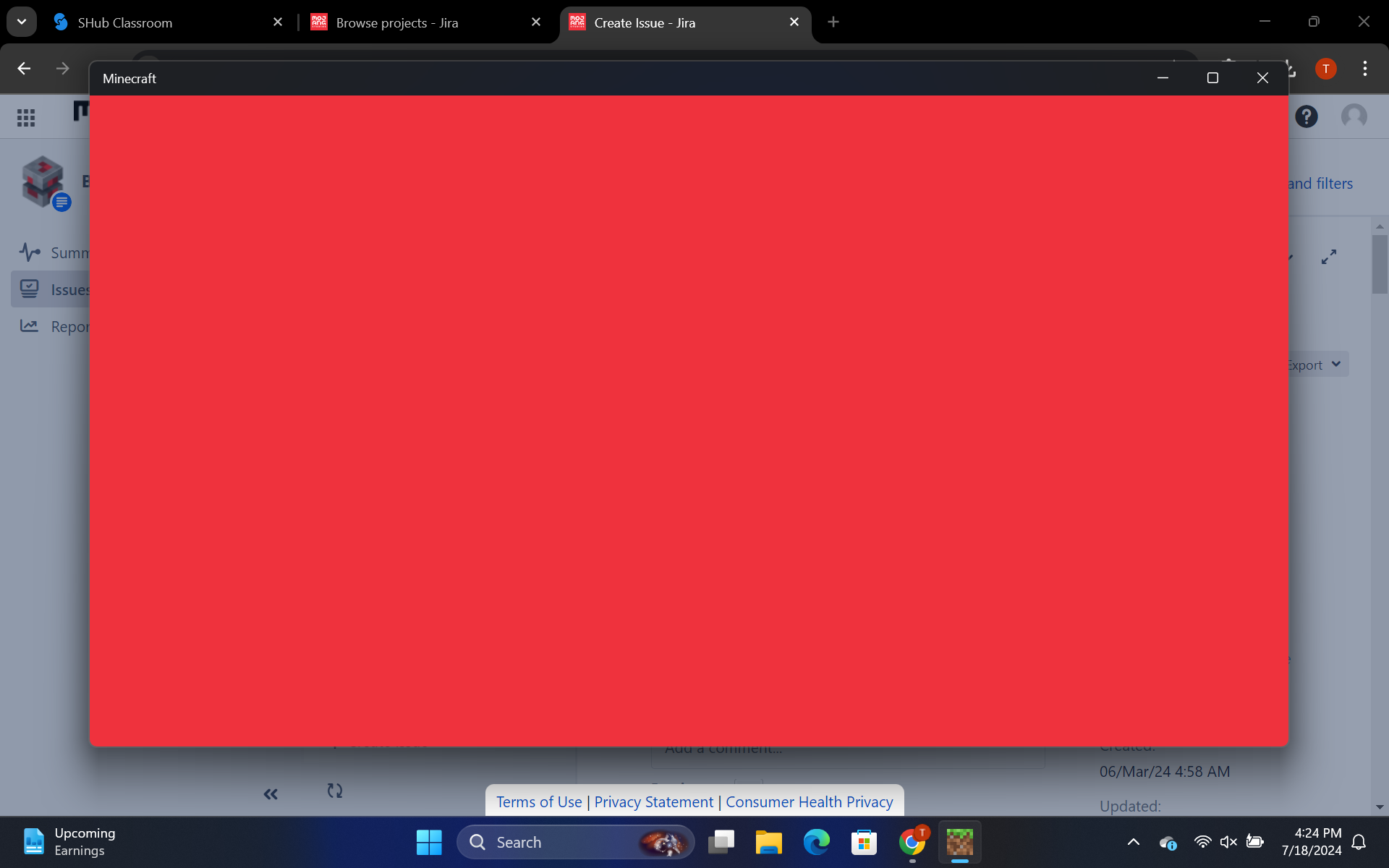 I can't play Minecraft because it stuck with the red screen on for hours