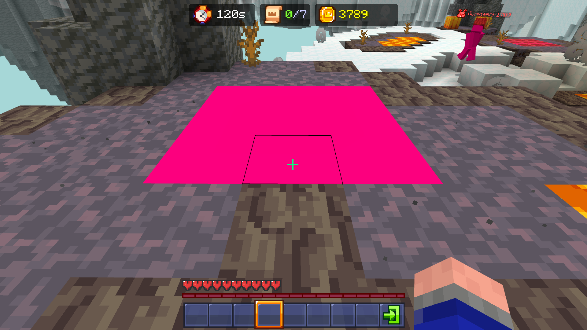 Sometimes, when I exit a minigame in the Bedrock 15 years MCC server, the skins of other players (and sometimes my skin), and some block textures are show as pink blocks.