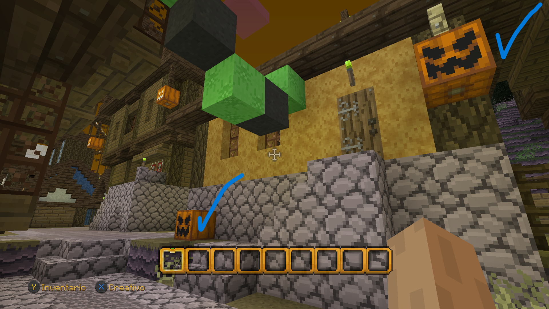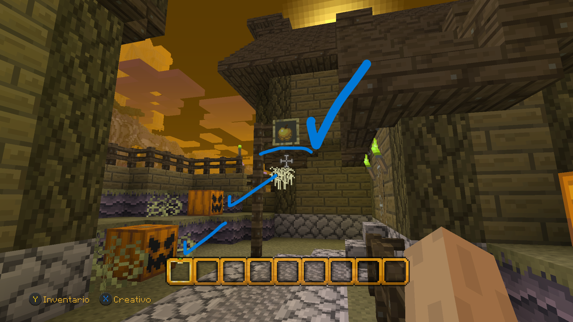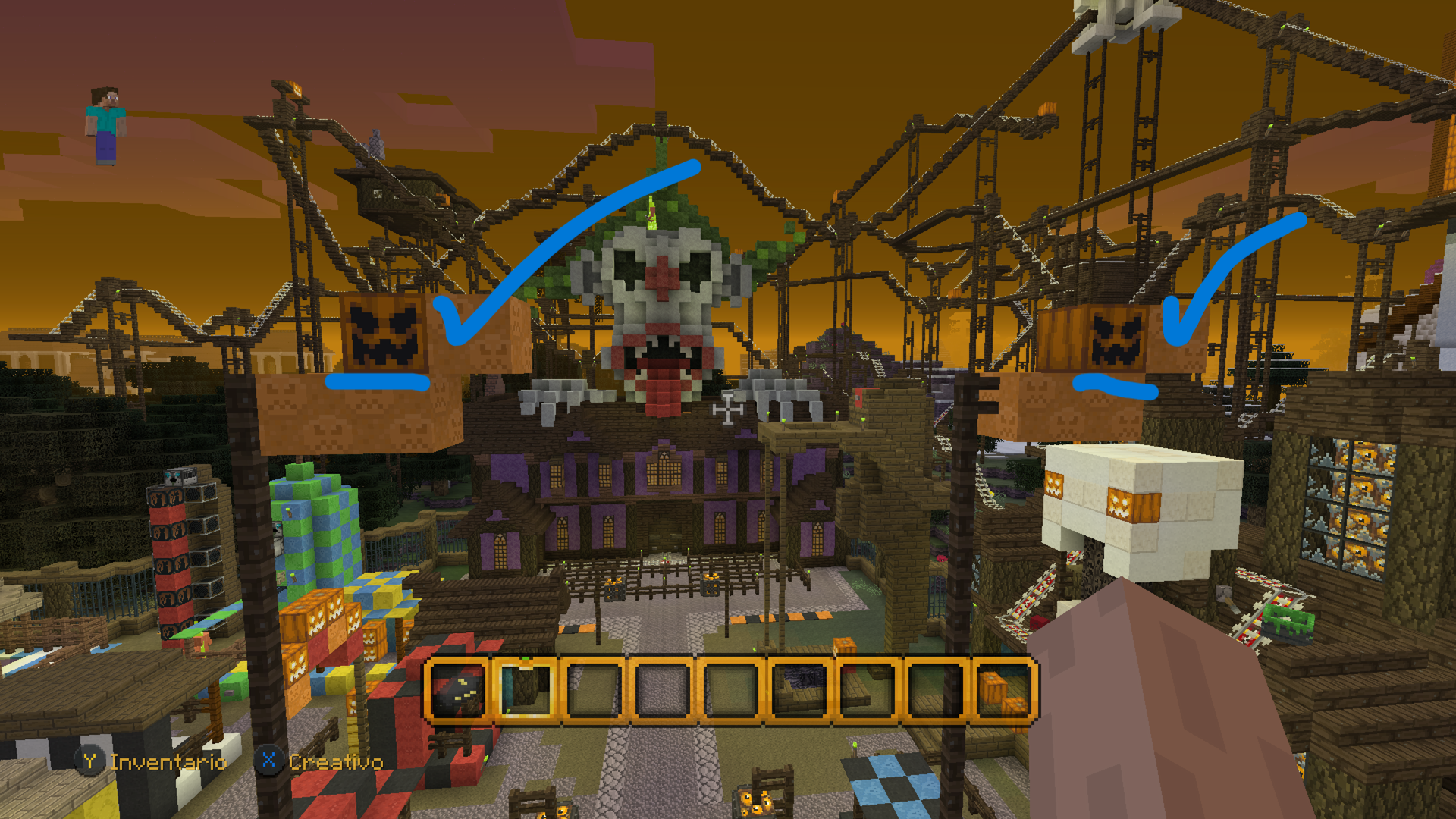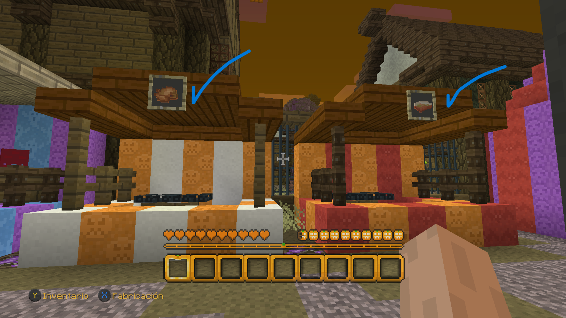 Also a pumpkin is missing on the top of a tent in the bedrock version while the console edition has it (I share images).