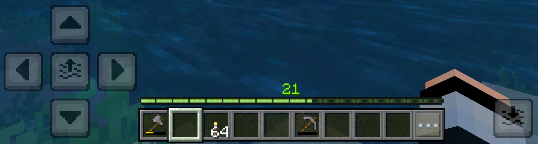 The swim down/fly down buttons are placed to the right, meanwhile, the swim up/fly up buttons are placed to the left.