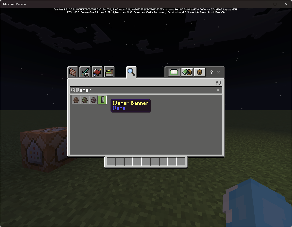 Search for "Illager" in the Creative inventory