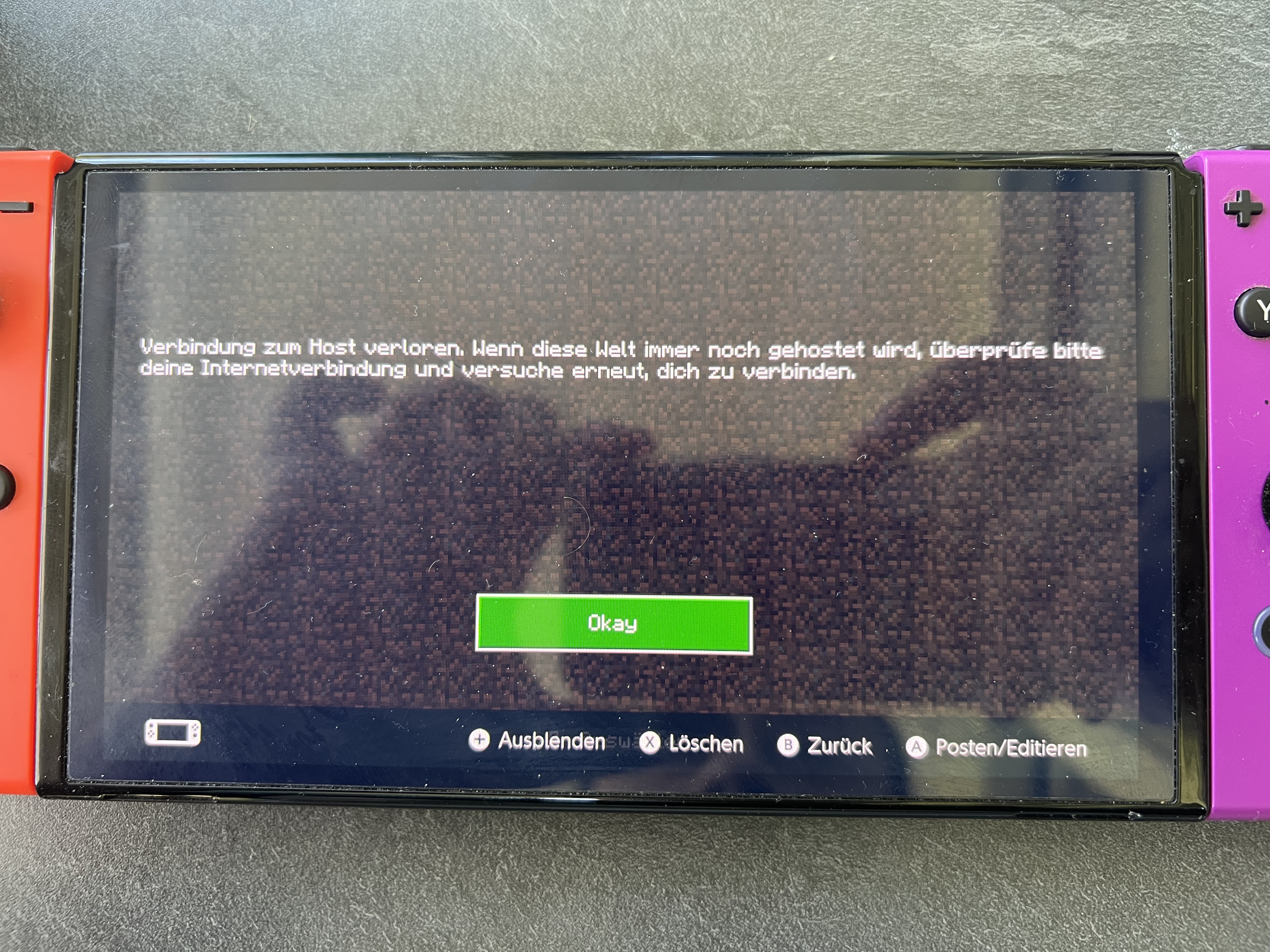 We've already tried this and many other things (newstart the console, look for error date in the system and more, and other games to but this work perfectly, but Mincraft doesn't 😞 does anyone know what to do about it. we try it in this moment with another worlt and this works actuelly fine 😞 ( we reached so namy in the old one and wand lost it all