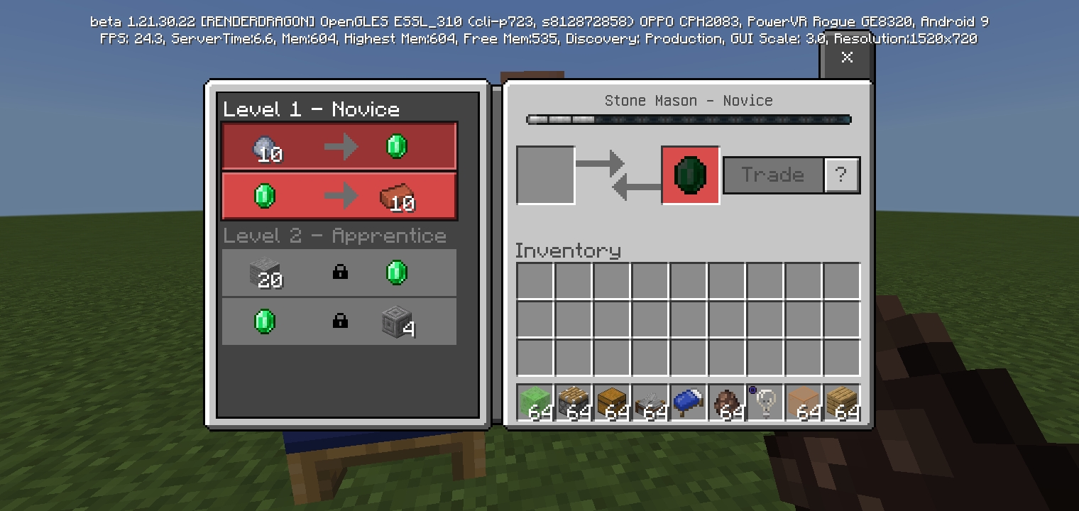 All the blocks and items have the new names shown in the changelog. The villager's occupation is shown as "Mason".