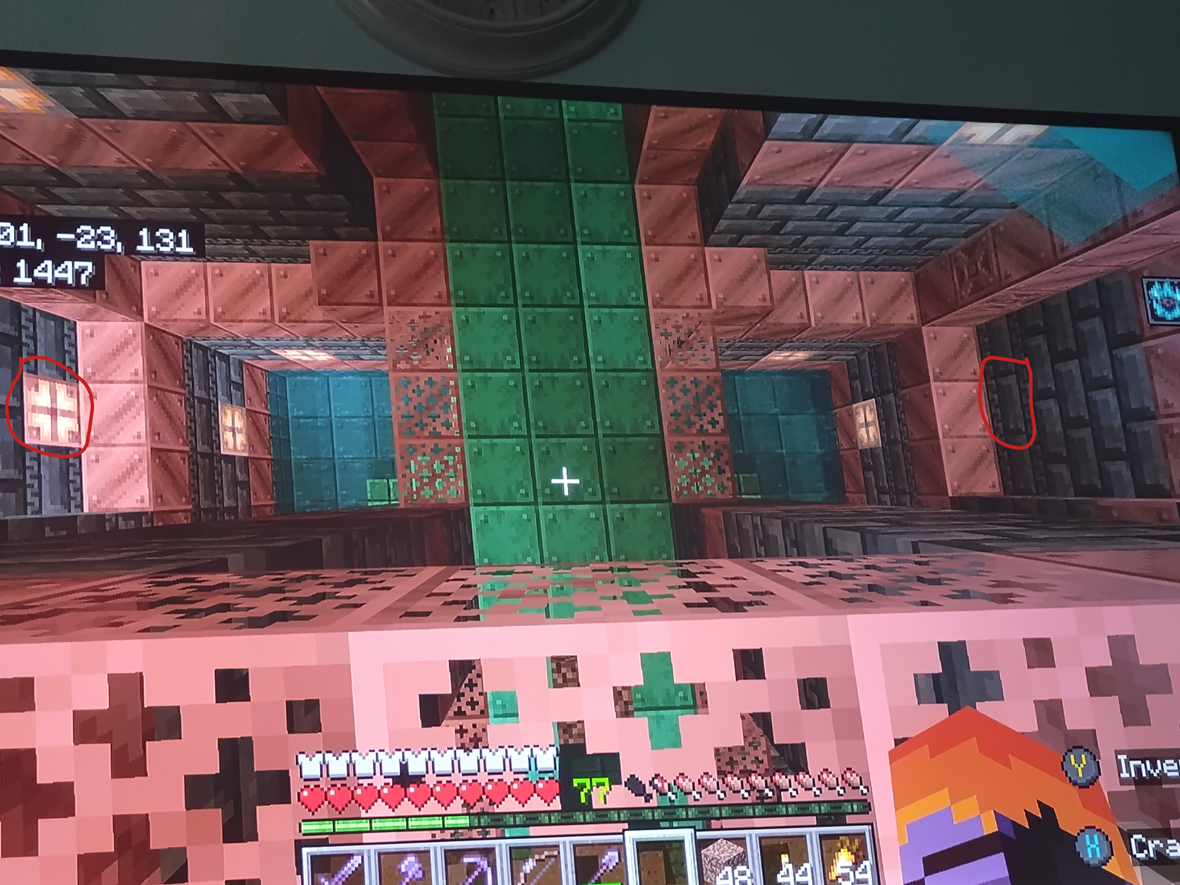 In the corridor end structure in the trial chambers (Corridor end 1 and Corridor end 2), one side of the room has a missing copper bulb, instead being replaced by a Chiseled Tuff Brick.