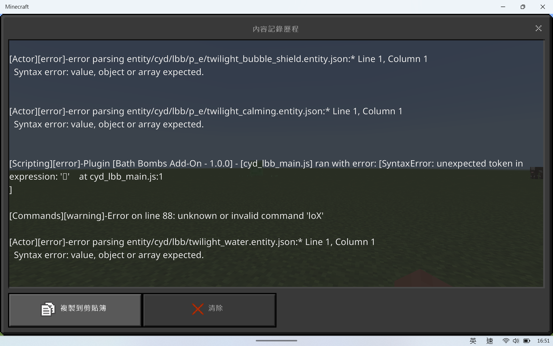 Whenever I attempt to use an Add-on purchased on the marketplace on a new and/or existing world, the addon will fail to load and a bunch of errors will continuously appear on screen. I was able to grab one screenshot which has been linked below as each error was going by too fast to see. I tested 3 separate addons, together and alone. These Addons are as follows: