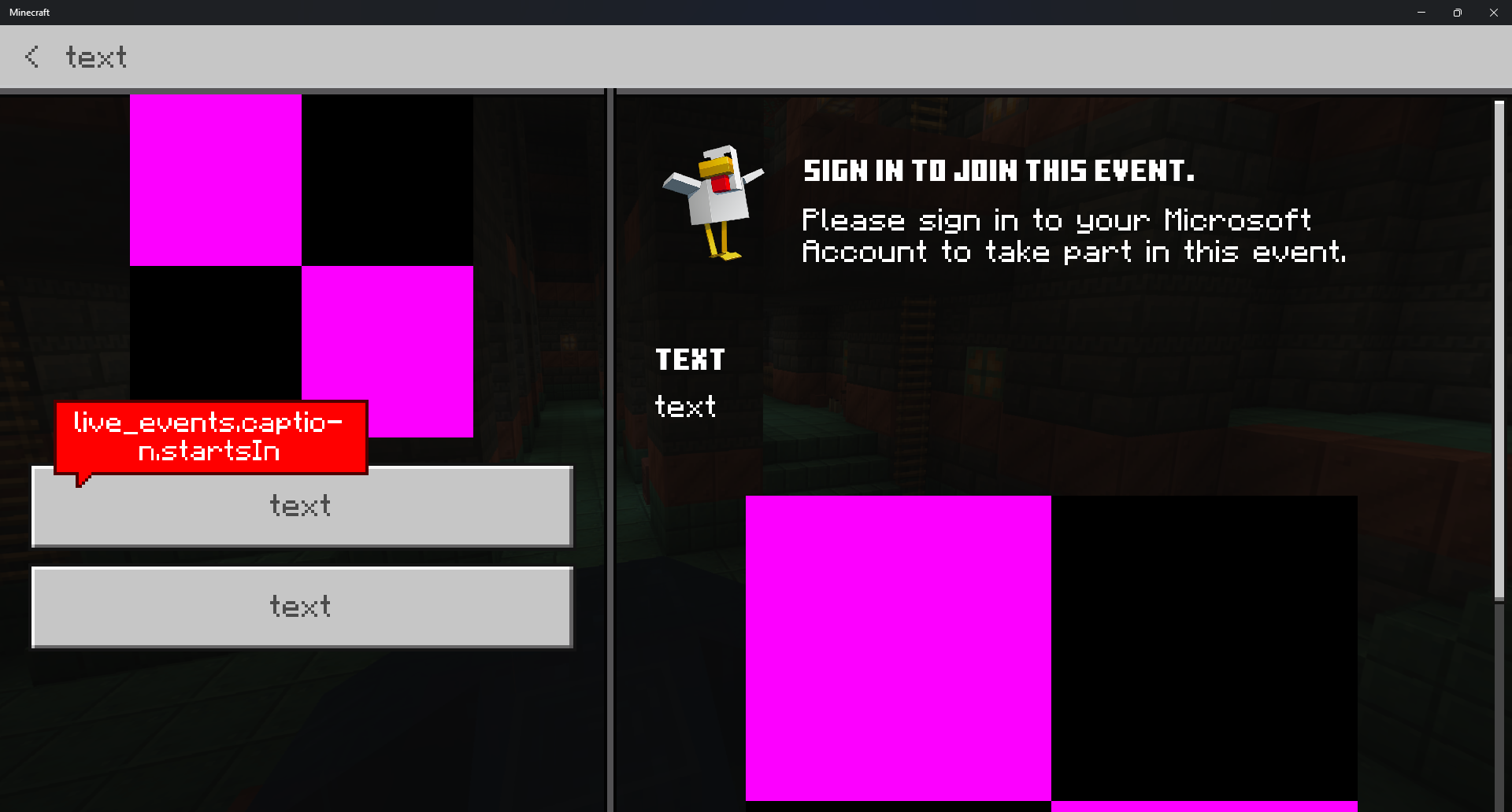 If you go to the Minecraft Bedrock Home Screen, you can see in the bottom left that the mc live server button is up, apparently by accident, since all the text boxes say “text”
