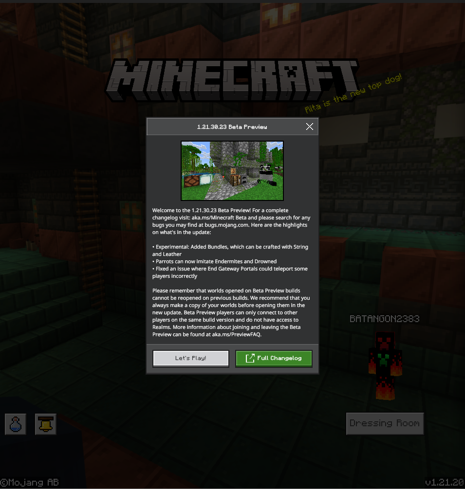 i was on 1.21.20 and this popped up "welcome to preview 1.21.30.23" how the hell???! check the photo