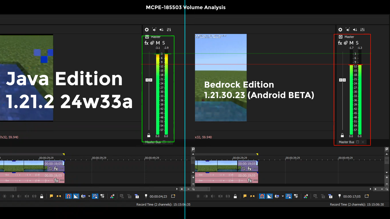 You should make a bug report for Java Edition too, because on Bedrock it has same volume as on Java, to make it sound good you need to change volume of it to 7.5 on Java, I don't know about Bedrock but probably something around that too