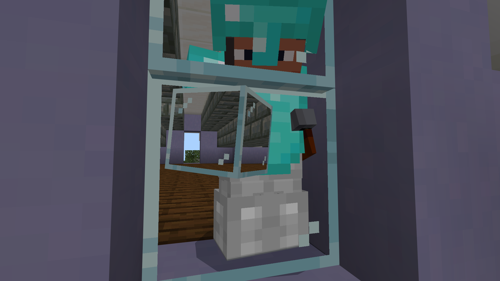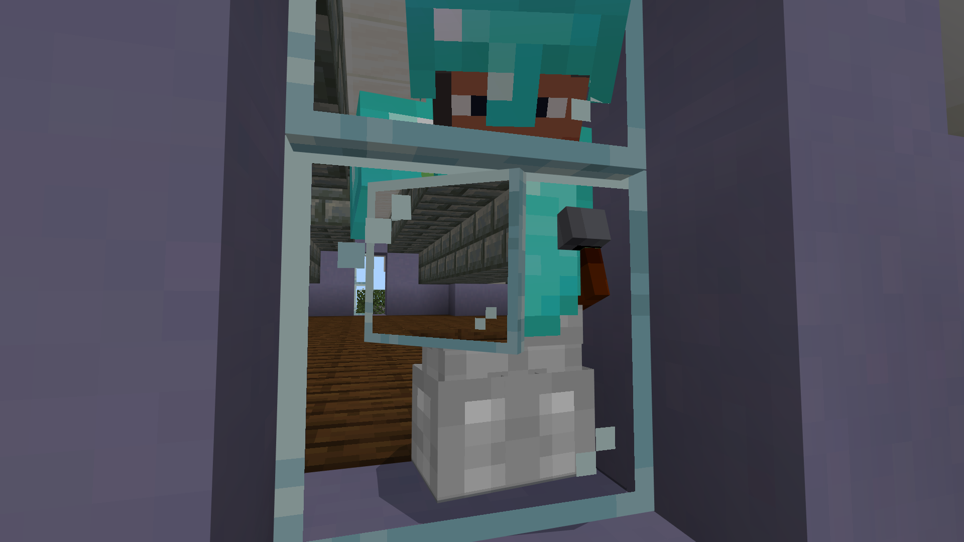 Invisible blocks such as glass, glass panes and beacons, when held in 3rd person will make any entities behind them partially or fully invisible(includes hardened glass and panes when education edition is enabled)