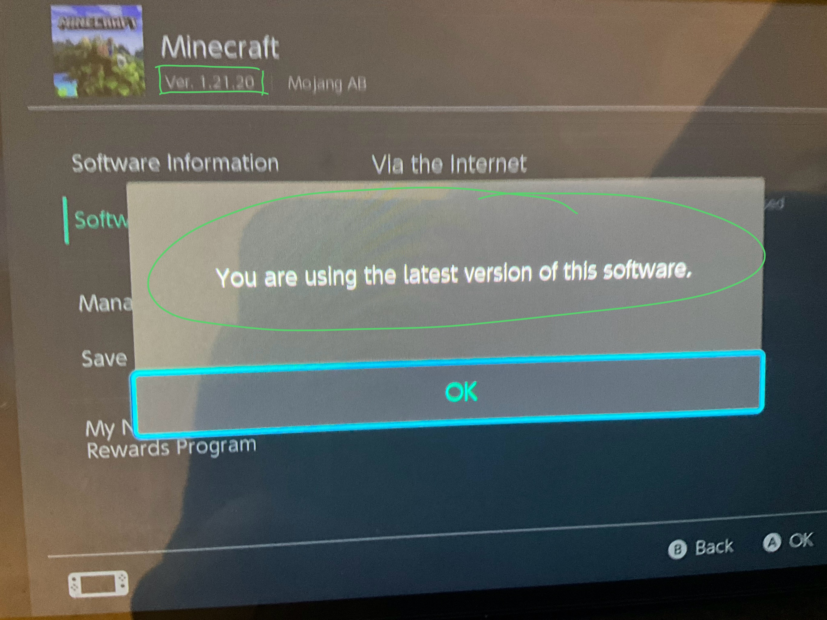 Hello! I play minecraft often with my friends on online servers, such as The Hive. One of my friends plays with a switch, which is unable to load servers after the realms problem with update 1.21.20. I know a new update has been released to fix it (it has fixed it for me and some others i know), but this update is not available on the switch. I have looked up this issue before, and several people had claimed it was because minecraft staggered their updates on various gaming platforms, but it has been several days since the update was released. I have tried manually updating the software and switch for him, but it always tells me that it is up to date, when it's not. I contacted nintendo about this, but they told me it was not an issue on their end, and that I should contact the creators of the game instead. I'm hoping it can get solved soon so that switch players can enjoy the online features again!🙂