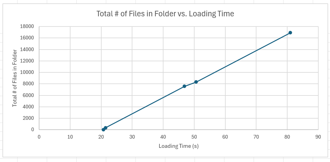 The loading time seems most correlated with the Total Number of Files in Folder: