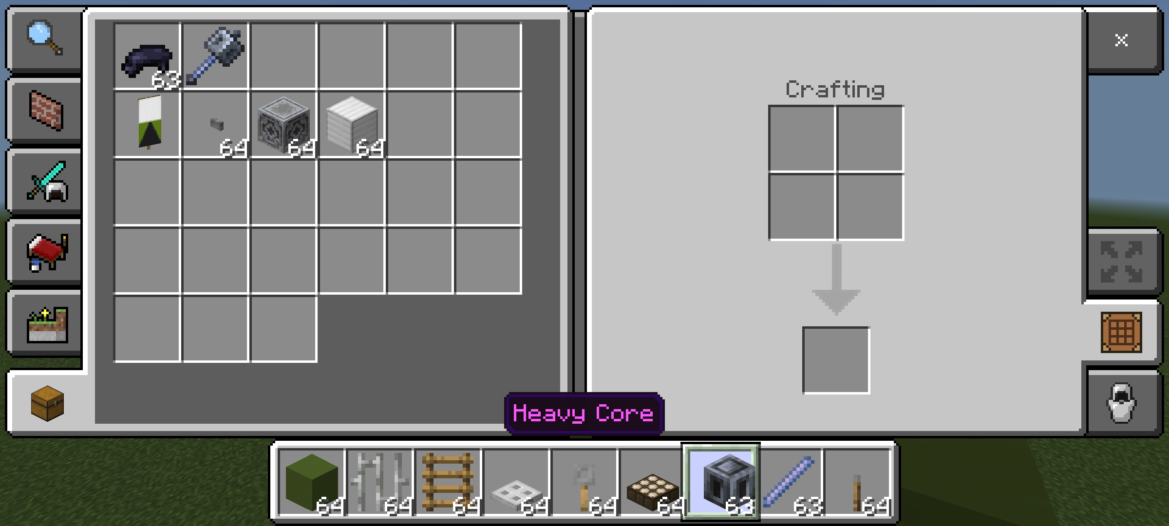 In Minecraft PE heavy core shifts to the right in the hot bar and in the creative inventory