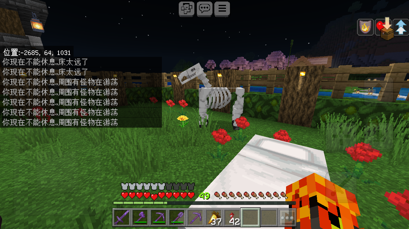 Skeleton horses incorrectly prevent players from sleeping, triggering the message “You cannot sleep, monsters are nearby.” This is despite skeleton horses being passive entities and should not affect sleep mechanics like hostile mobs do.