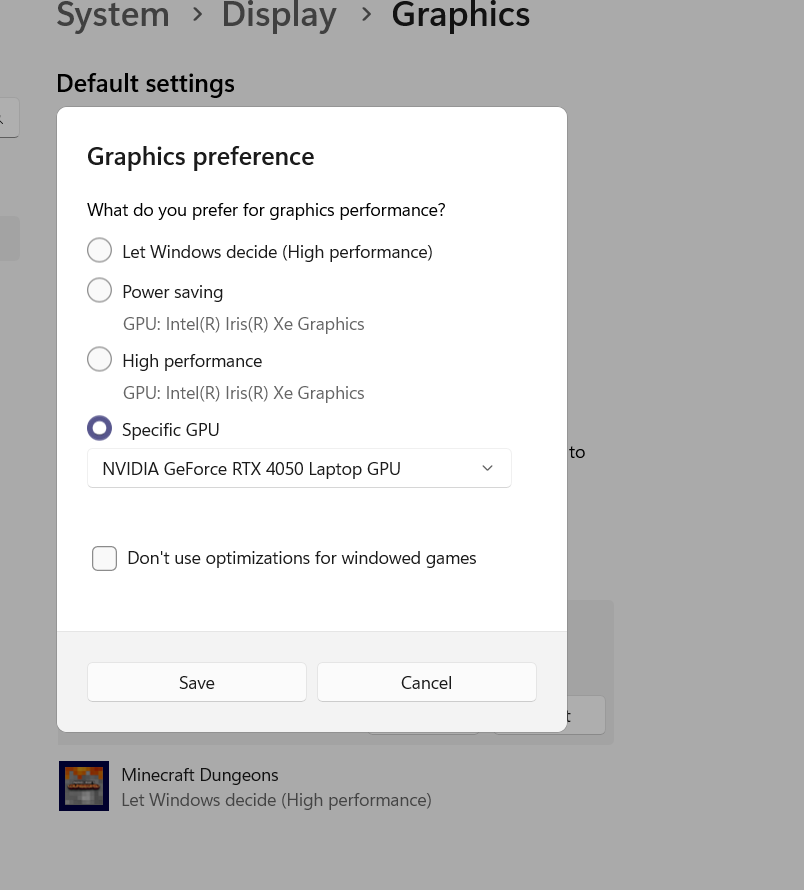 Browse to System > Display > (scroll down) > Graphics.