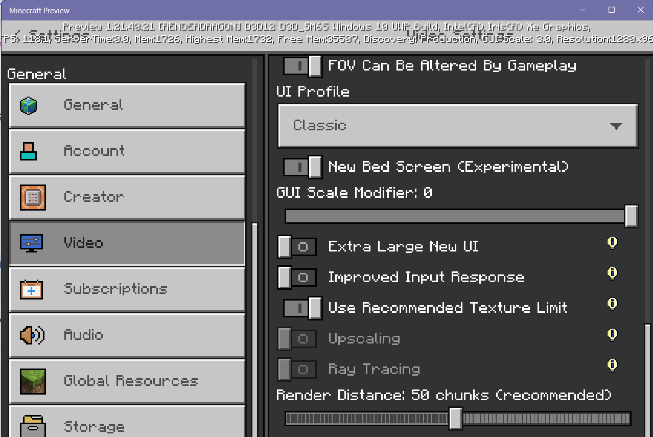 Does this also occur in the Minecraft Preview app? If so, could you attach a screenshot of the debug text at the top of the screen?