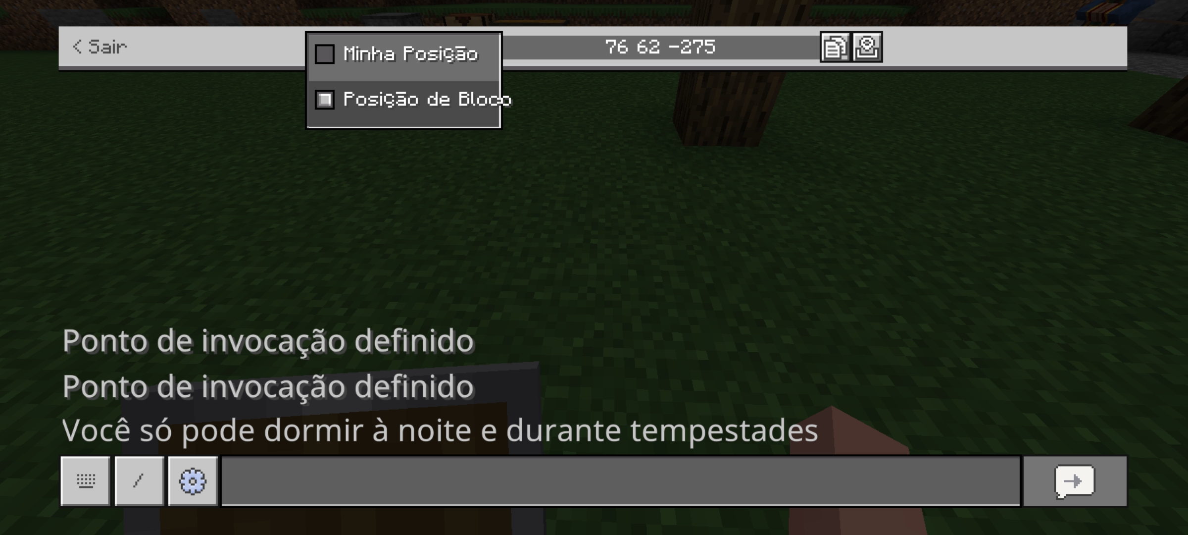 When selecting the way to copy coordinates, whether from the player's position or from a block, the text "Block position" exceeds the limit of the Brazilian Portuguese layout.