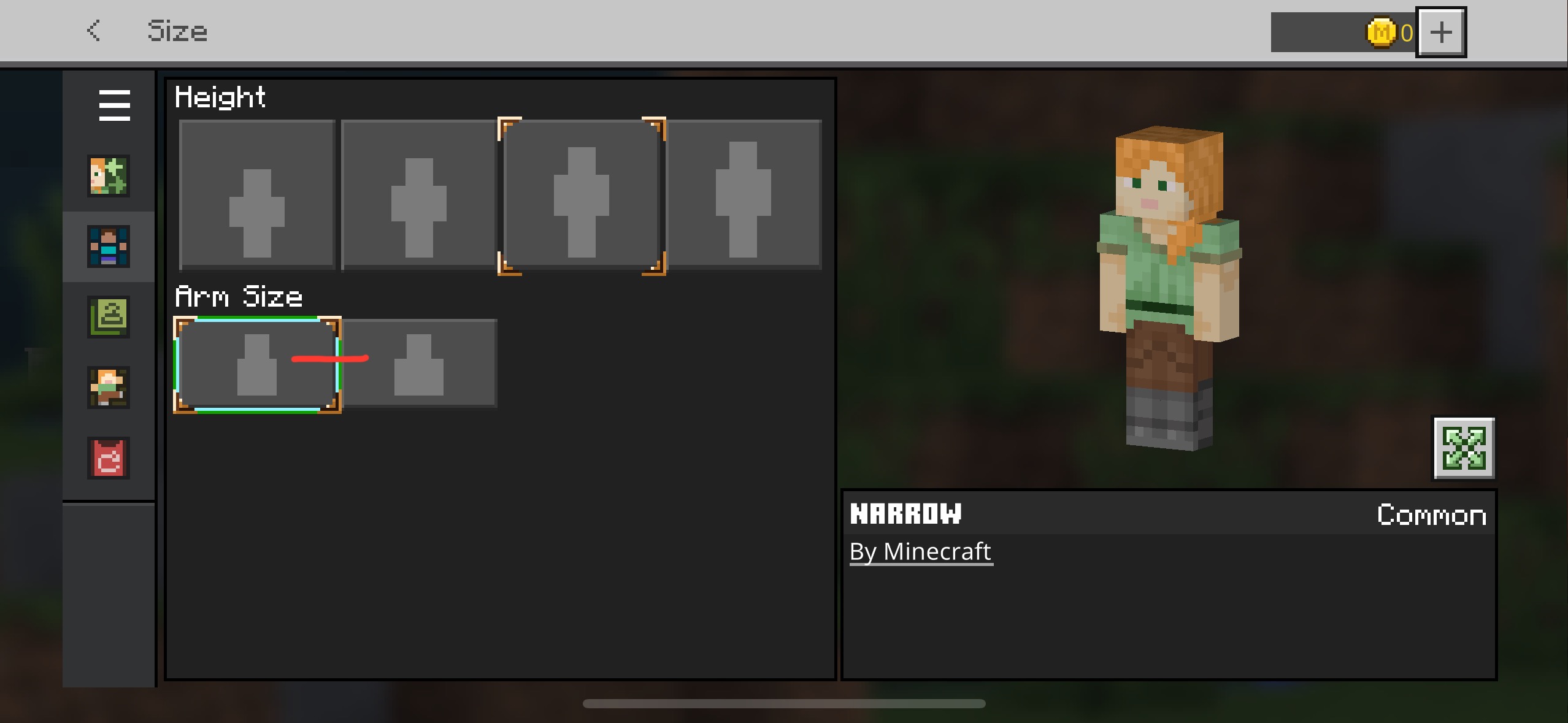 Equip any slim-armed skin (e. g. Alex)