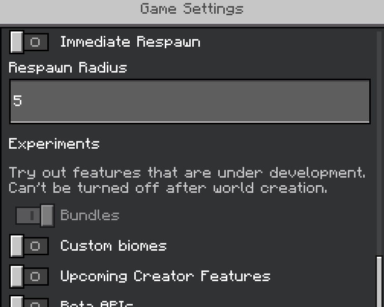 After you turn on the Experimental Bundle option in an already created world, if you place a bundle on the crafting block and add any color, it does not show you any output to dye the bundle.