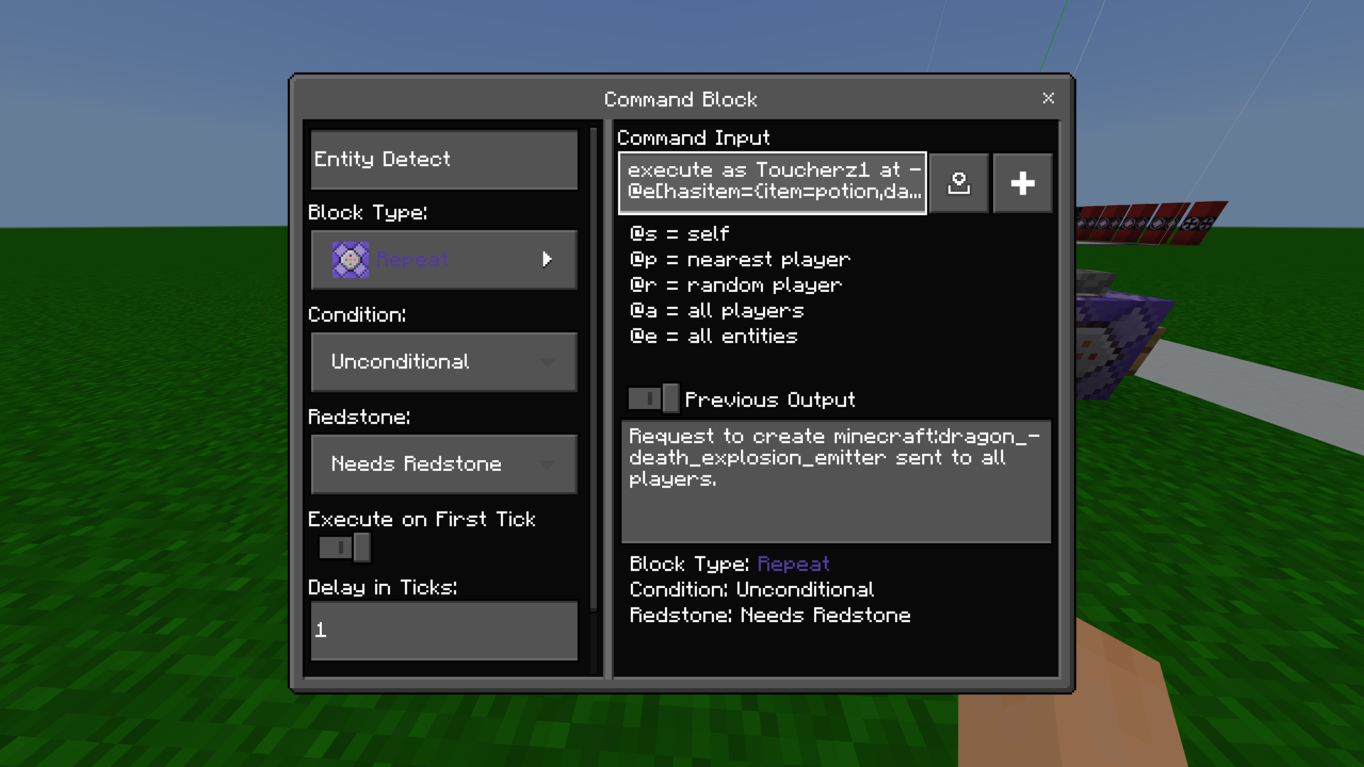 When a block is powered it retains the output signal even after power is not input. I've tried turning it into an impulse command block to make it only work once, but the output signal stays, and it charges the next repeating command or prevents it from happening again if it is an impulse command. All commands are set to "Needs Redstone". I've also broken the comparators and replaced them, but it stays powered.