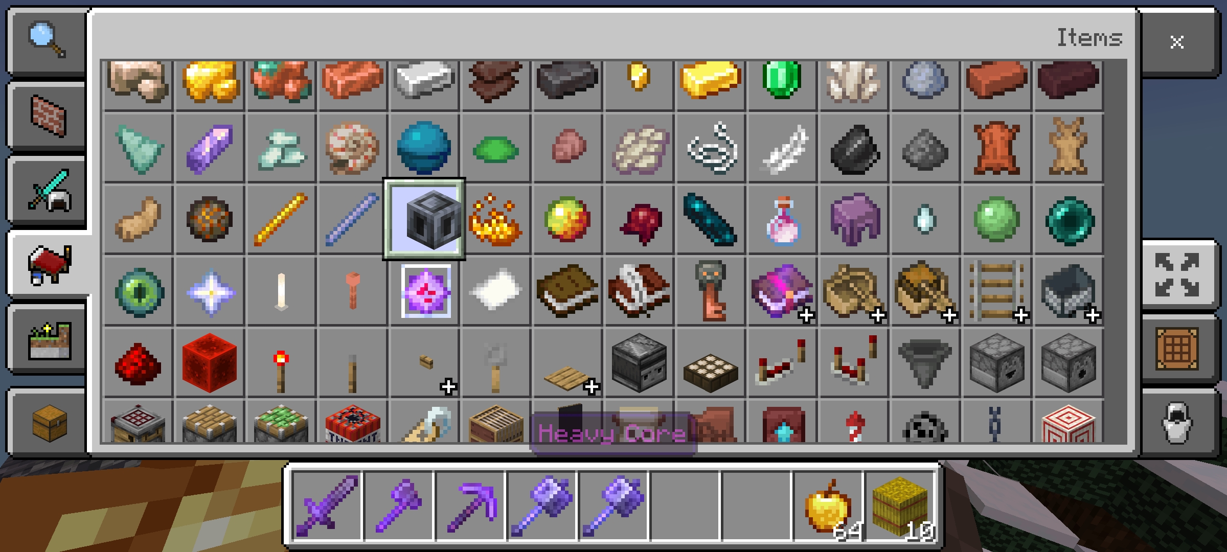 In creative mode, the Heavy core is not aligned in it's designated slot.