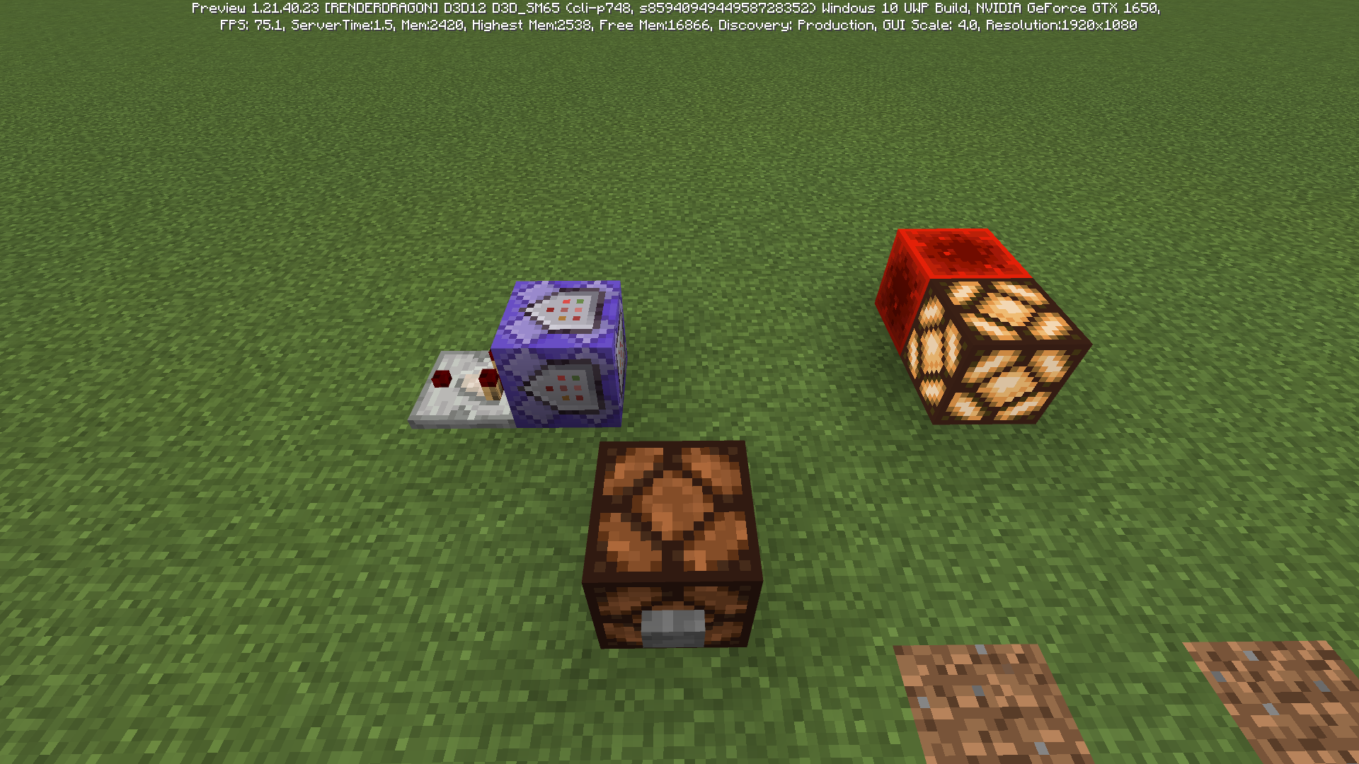 1. Place two redstone lamps that we will compare (One is turned off No. 1, No.2 is always active) The impulse command block will compare these two signals, and when lamp No. 1 is active, the command block will give a signal