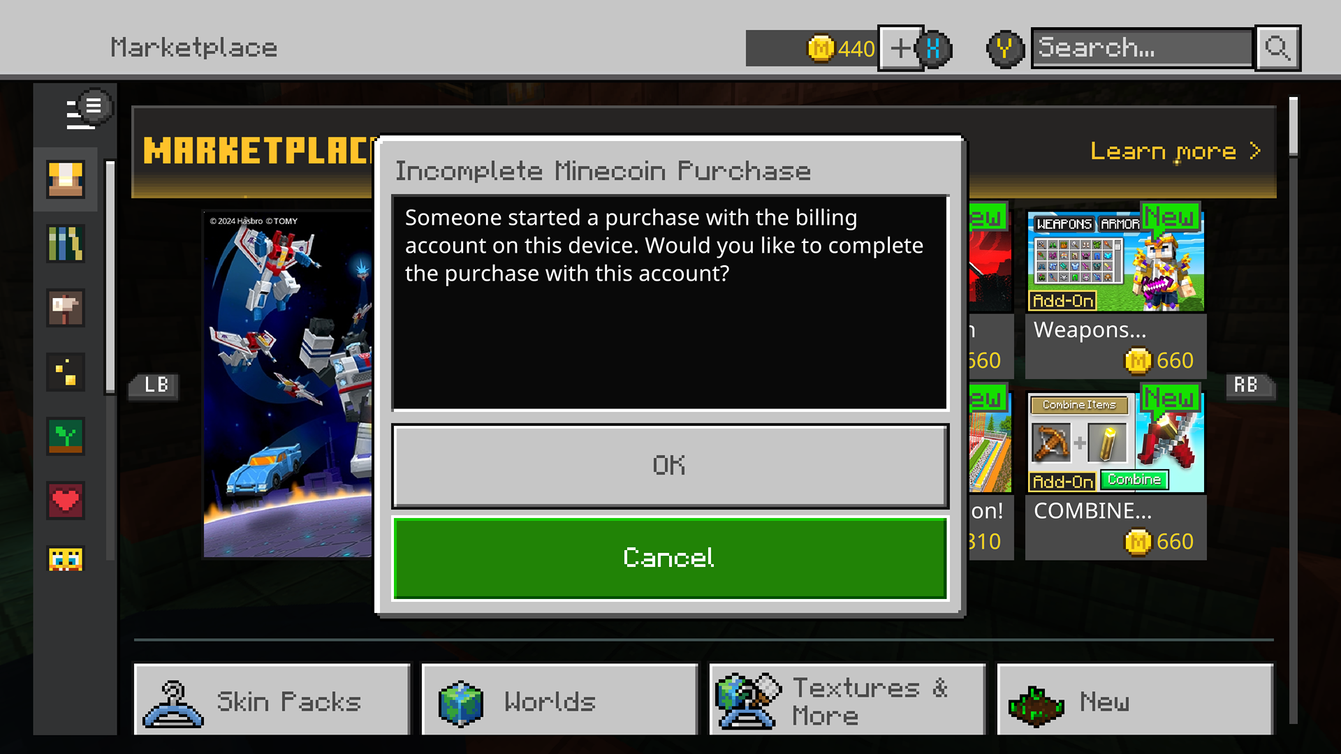 Other info: when I click ok I don't get Minecoins and I don't get charged