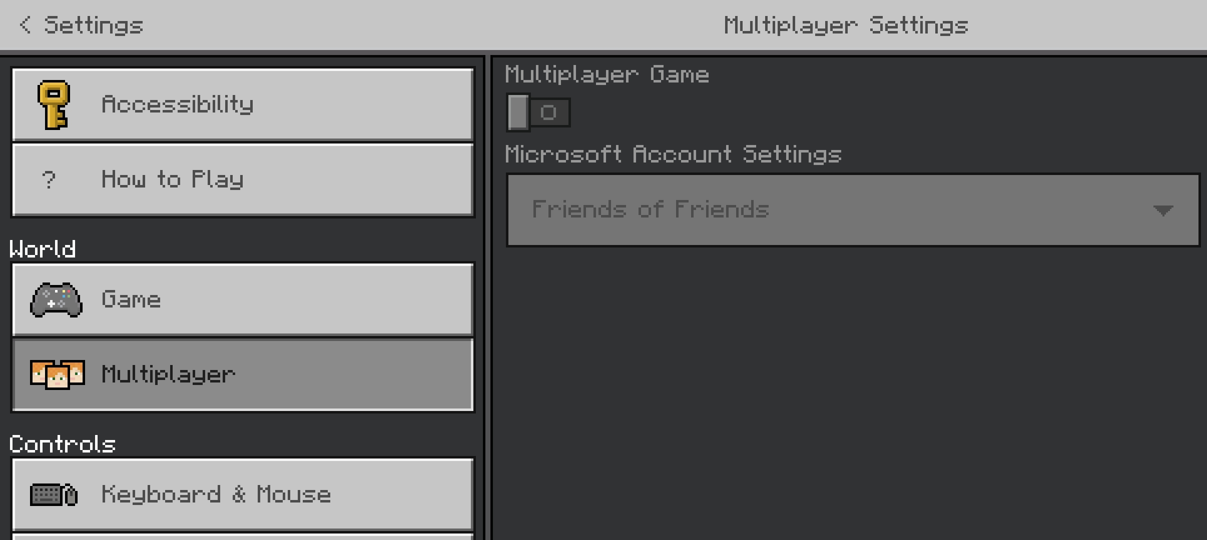 Attachments: Showing Multiplayer Game disabled, in world but enabled outside world.