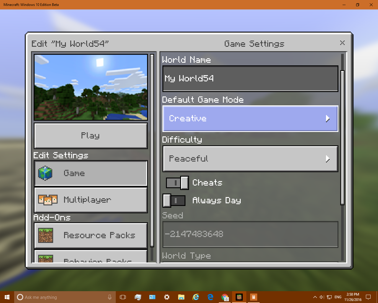 1. Create a new world