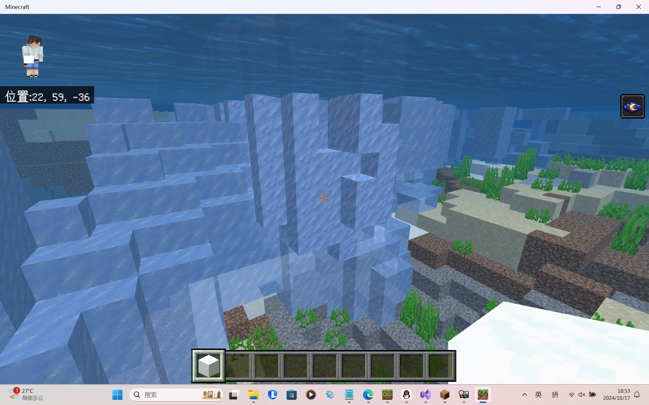 Weird ice and snow blocks are generated underwater.