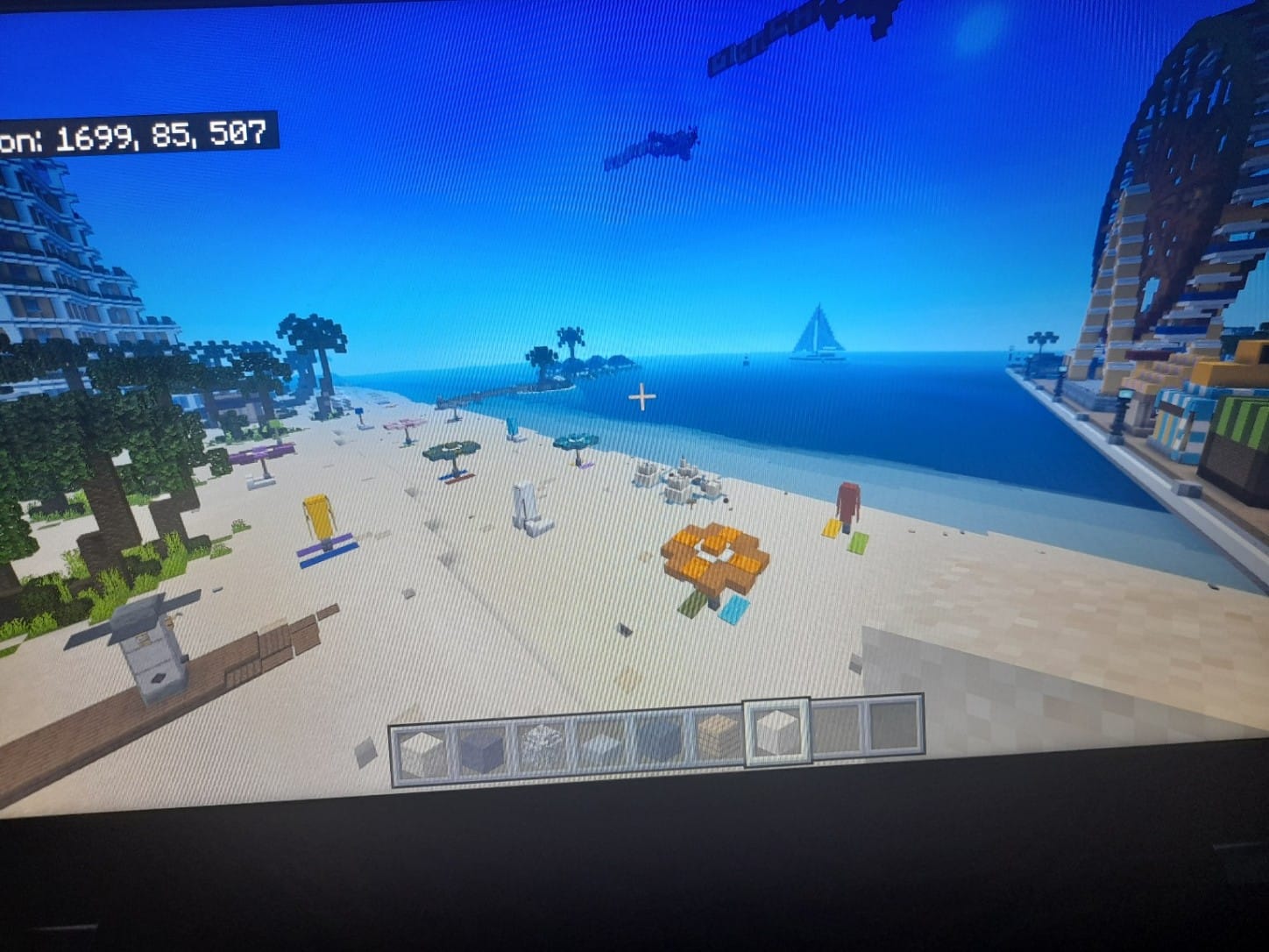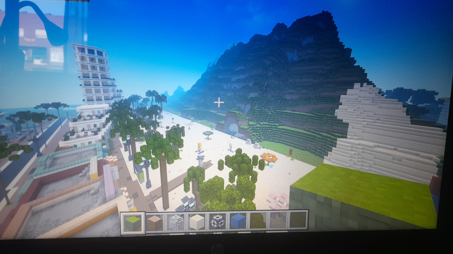 When I join to my city world (which I terraform and build in it), I saw a giant mountain that destroyed my custom beach with all the buildings I put (a pier,a resort and all my beach) and I dont know what was the problem. I enter on my world before everything was fine but now its not. This took me at least 4 months and I want to have it back, please. My Minecraft my world name is Beach city (DEFINITIVO)