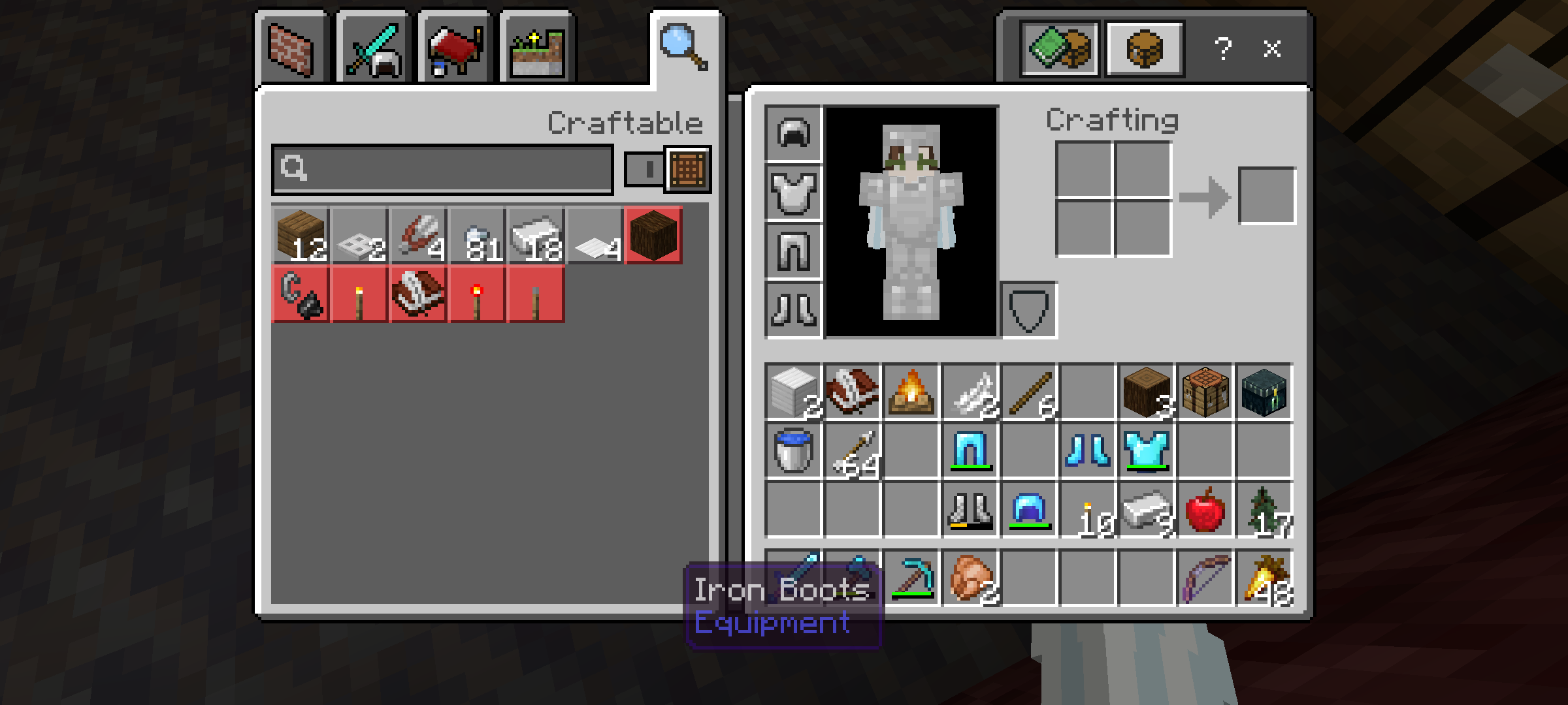 armour surrounds entire player model when a full set is equipped and leggings are invisible