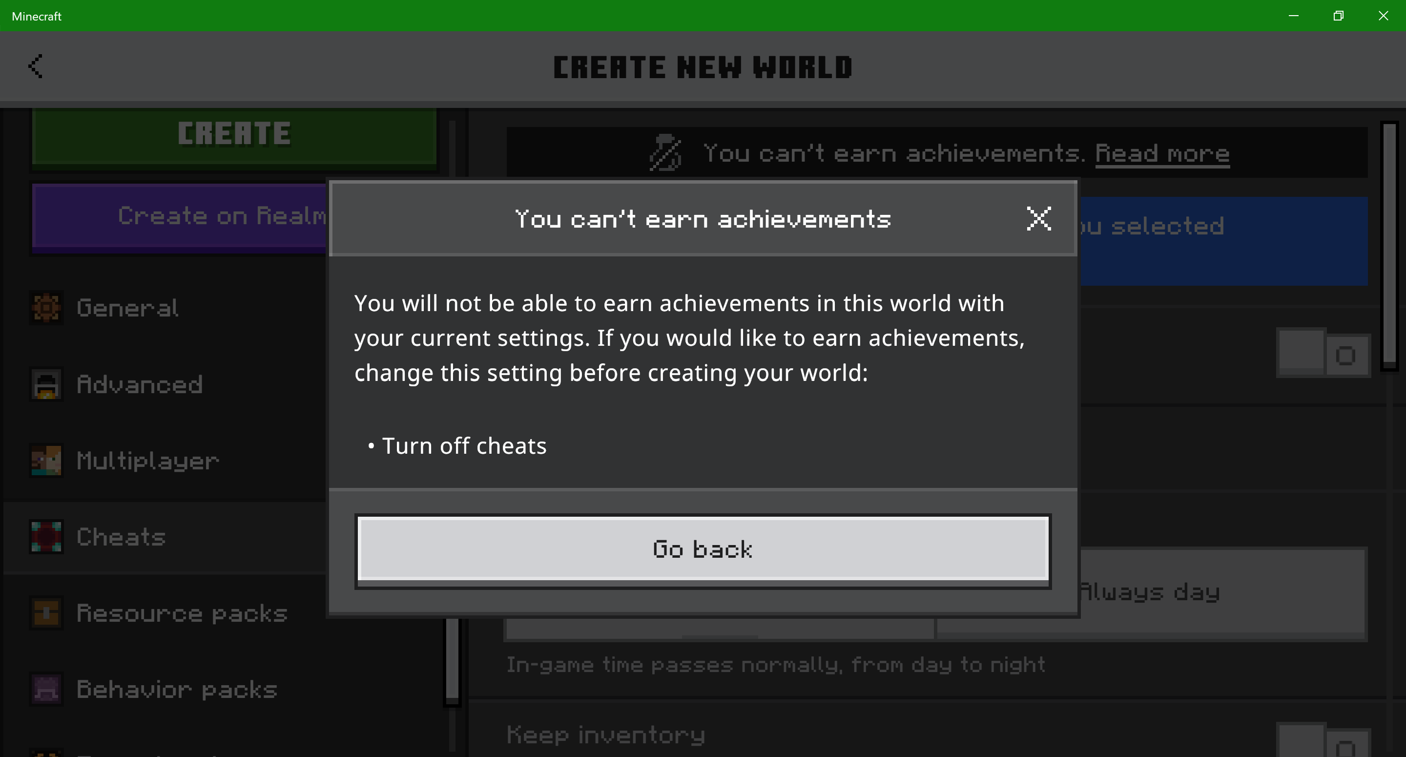 Since cheats are off it should not tell you to turn off cheats.