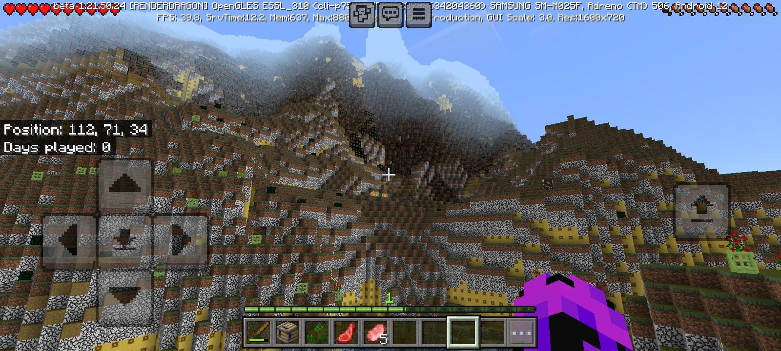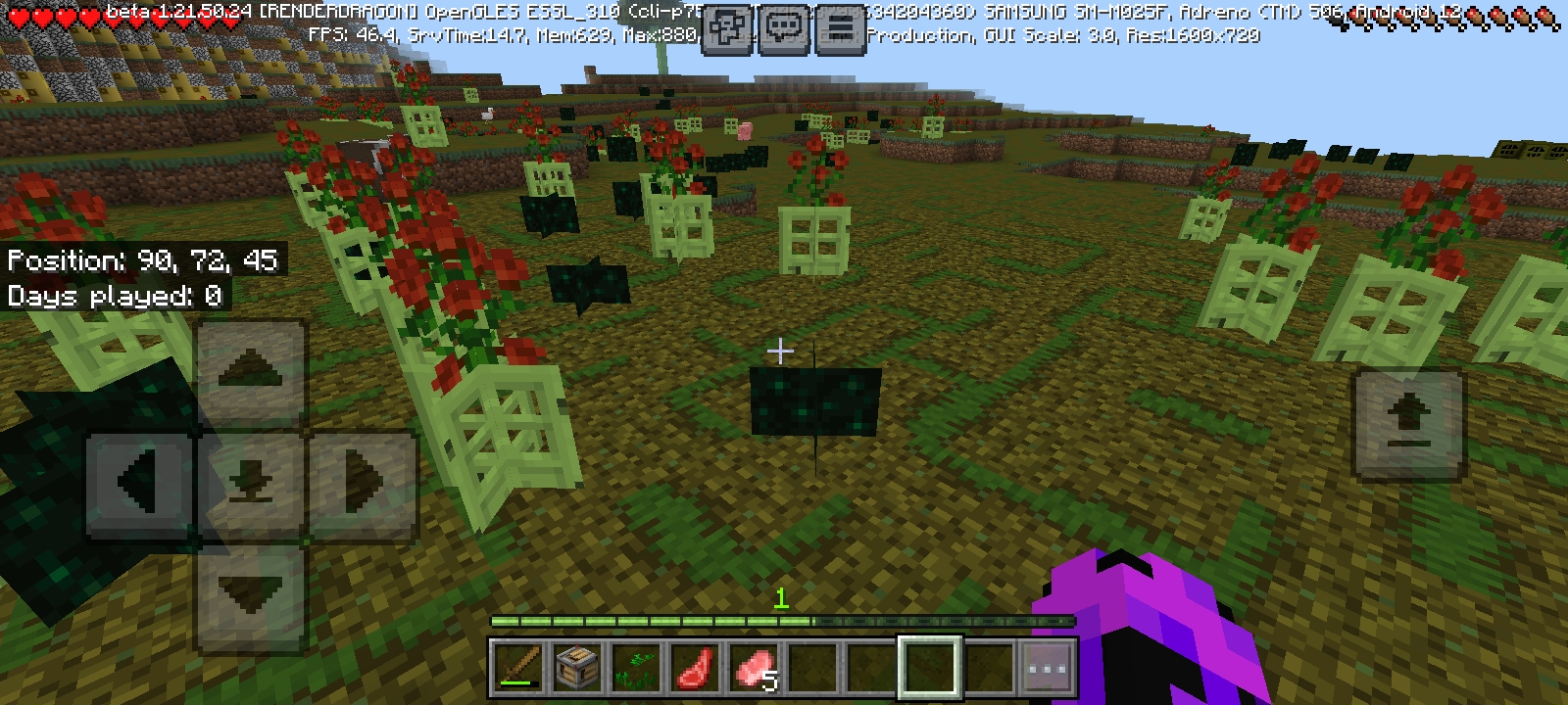 When I was playing in the beta version I accidentally closed the game and when I re opened it the textures were all mixed up but after a restart they were fine,the mixup of the textures can be seen in the images I have provided, and for some reason hostile mobs were spawning in the day and some had gold and even diamond armor,I barely escaped them