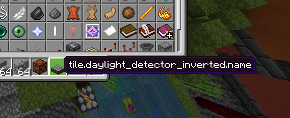 If you pick up an inverted daylight detector with the middle mouse button, it is given in the same form to the inventory. This block has a broken name: tile.daylight_detector_inverted.name