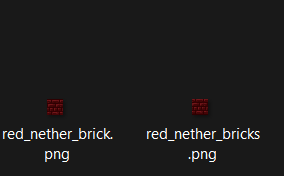 As you can see below, game files now have two Nether Bricks & Red Nether Bricks textures but only the older one is used because of the name issue.