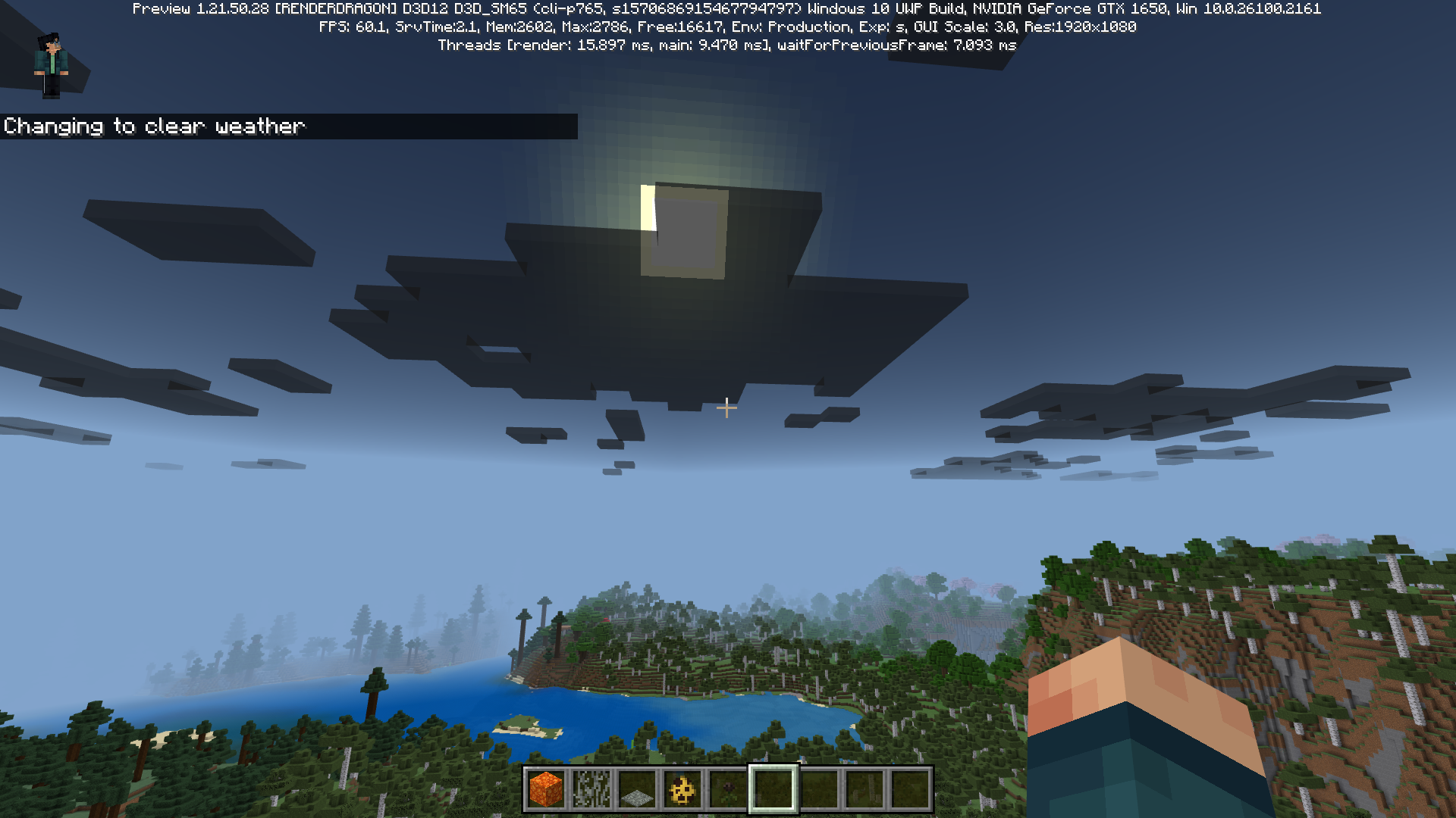 Although the main (and most important) issue described in MCPE-131325 has been fixed in the preview, it is still possible for the sky and clouds to visually mismatch the current weather.