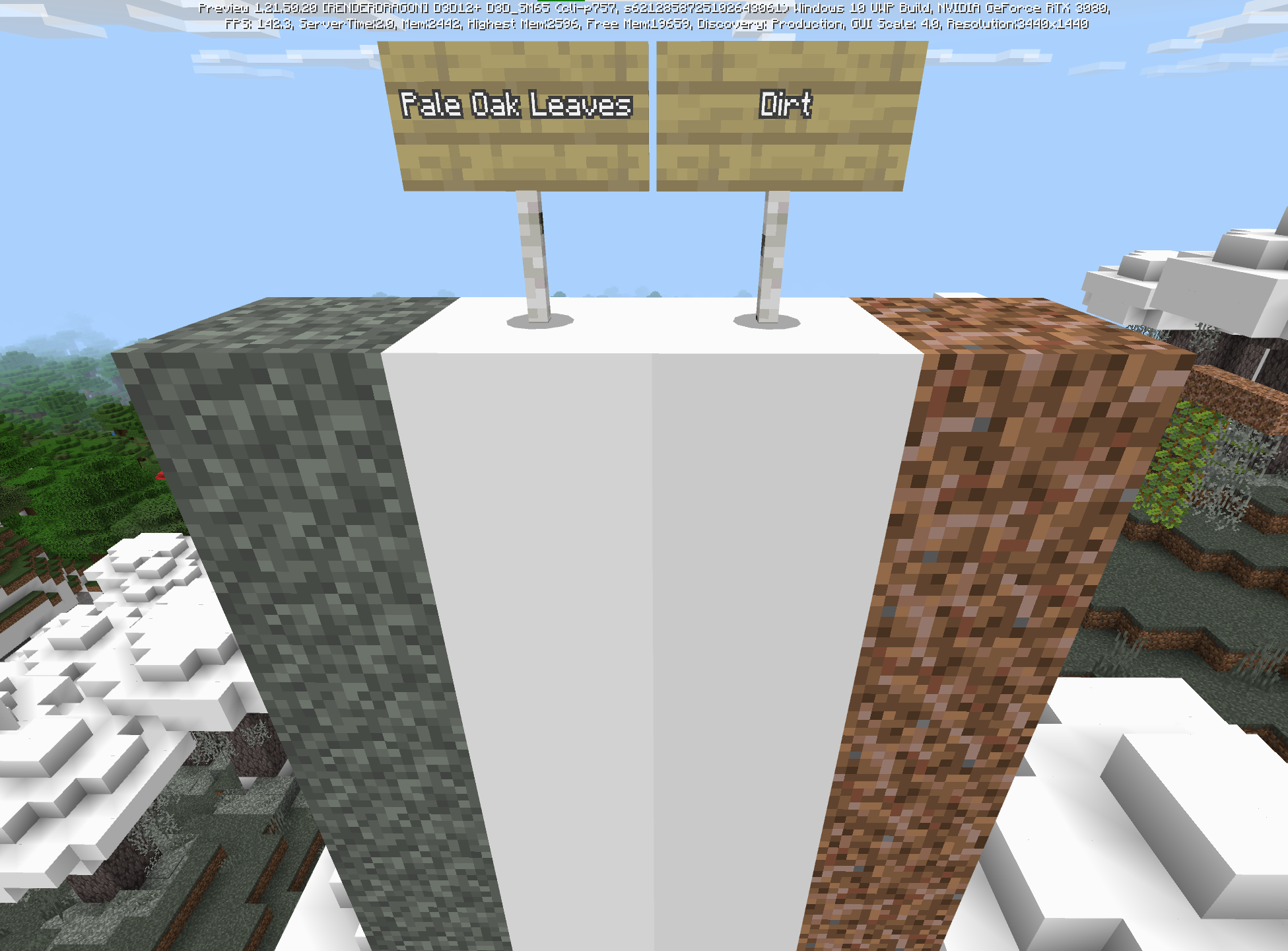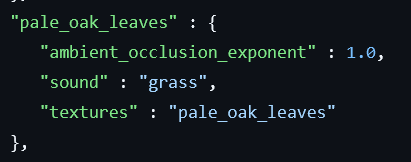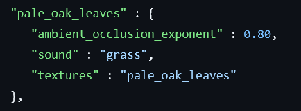 Pale Oak Leaves are lighter on Bedrock Edition than Java Edition due to a different ambient_occlusion_exponent value in blocks.json. Having a brighter canopy detracts from the spookiness of the Pale Garden.
