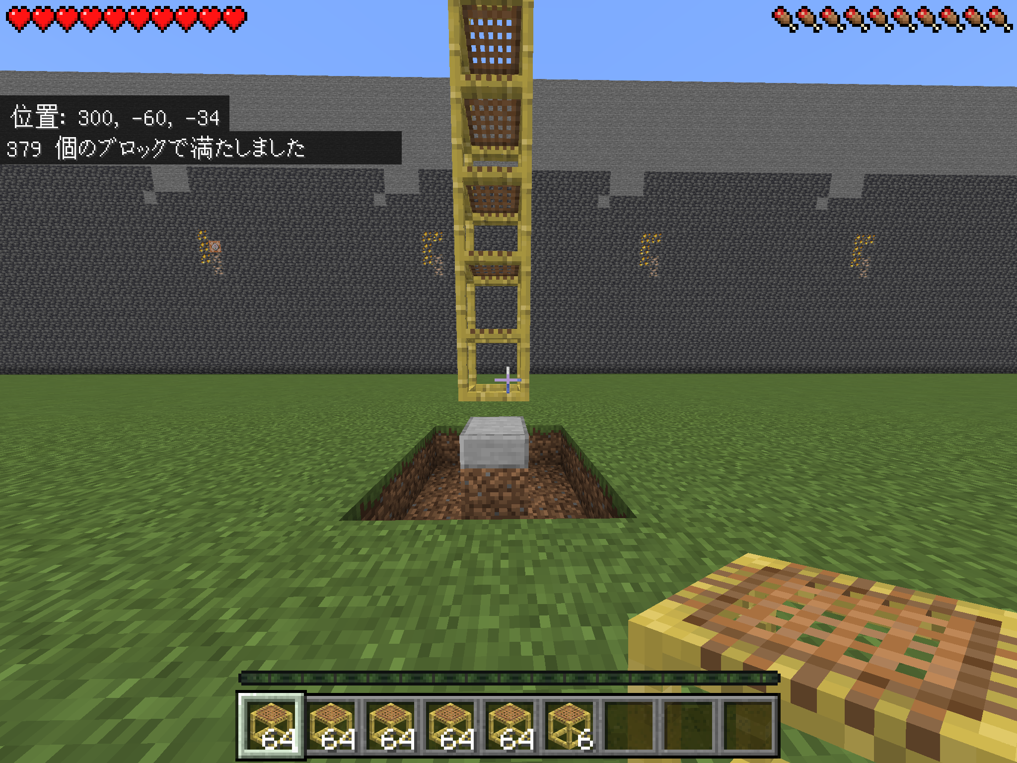 2.Type the command:fill coordinateA coordinateB scaffolding (The Y coordinate of coordinate A is the coordinate of block +1.